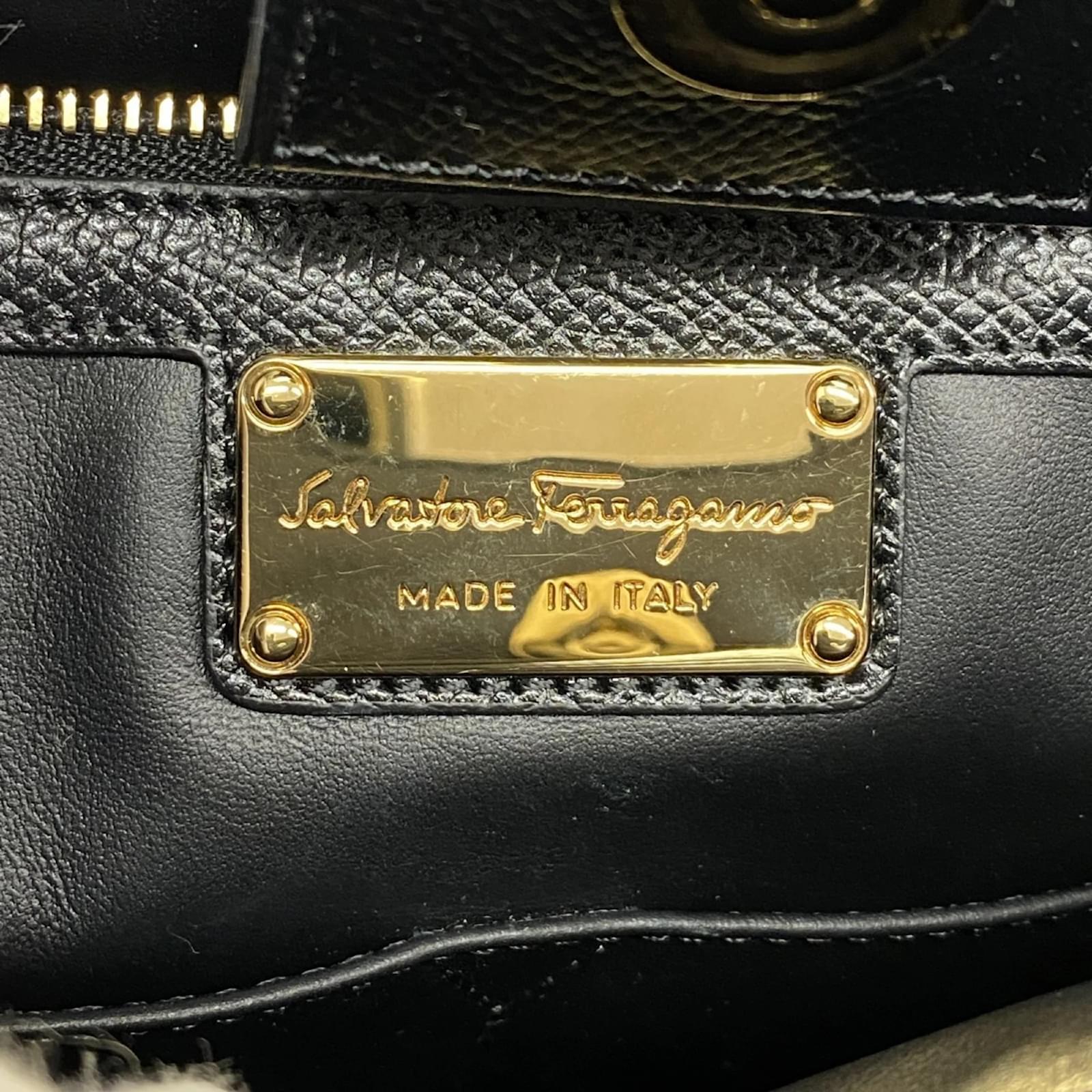 This Salvatore Ferragamo shoulder bag is crafted from black leather and features gold hardware. With dimensions of 22cm x 29.5cm x 12cm, it offers a practical size for daily use. The bag is categorized as used but is in good condition, showing slight traces of use, including minor scratches and dirt. It comes with a dust bag for storage. Potential buyers are encouraged to review the images for a detailed view of the item’s condition and included accessories.