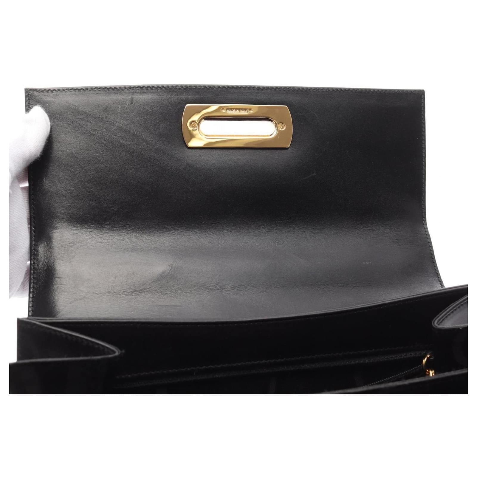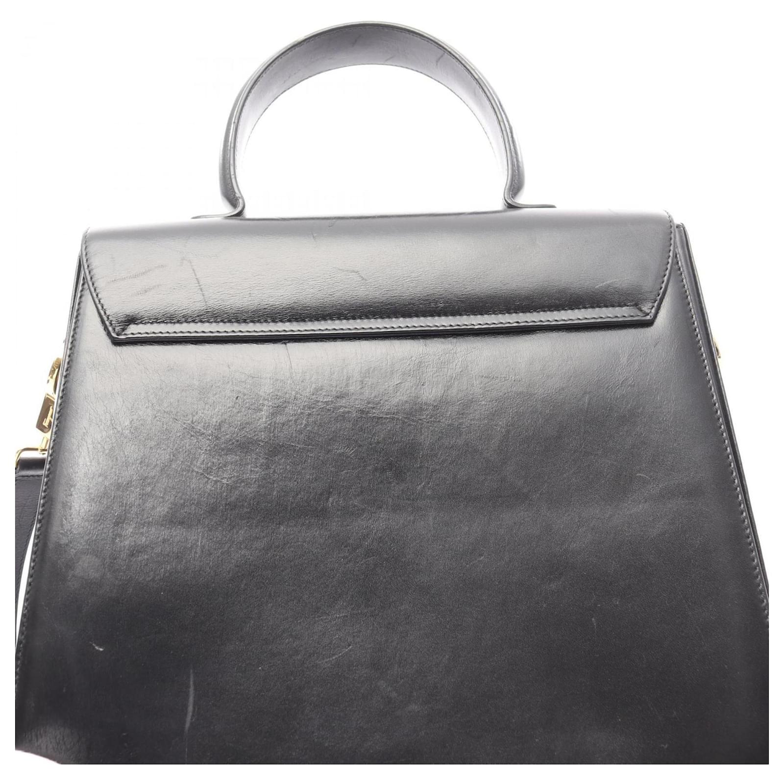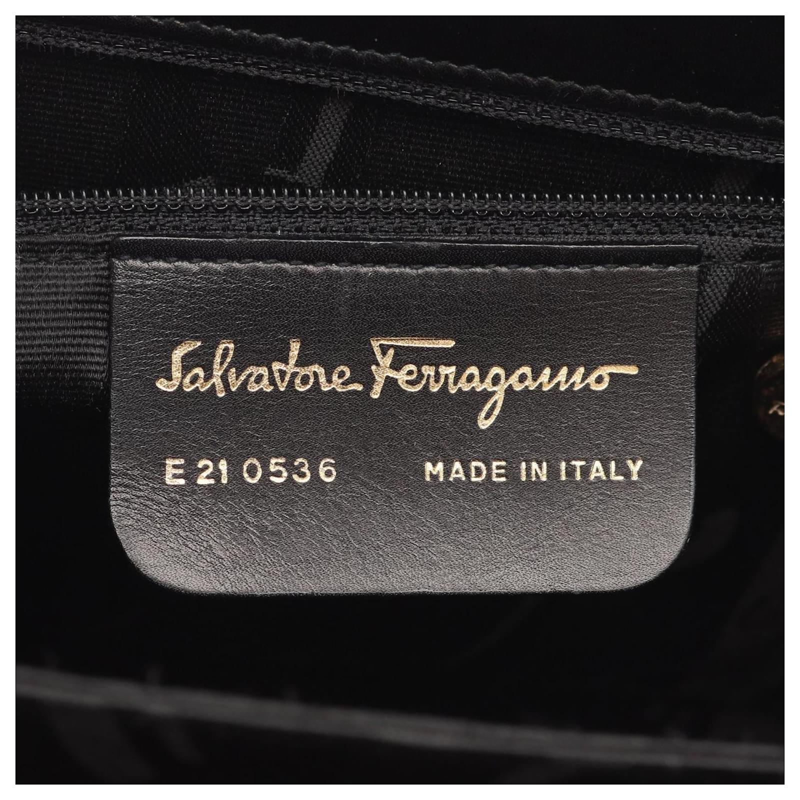 This Salvatore Ferragamo Gancini handbag is crafted from black leather, offering a stylish accessory for various occasions. The handbag measures 23cm in height, 26.5cm in width, and 10cm in depth, with a handle length of 26cm and an adjustable strap length ranging from 103cm to 111cm. \n\nIt is categorized as used but remains in good condition, showing traces of usage, including some visible damages or dirt. Potential buyers are encouraged to review the provided images for a clear understanding of the item’s condition. The handbag comes with a shoulder strap, enhancing its versatility.
