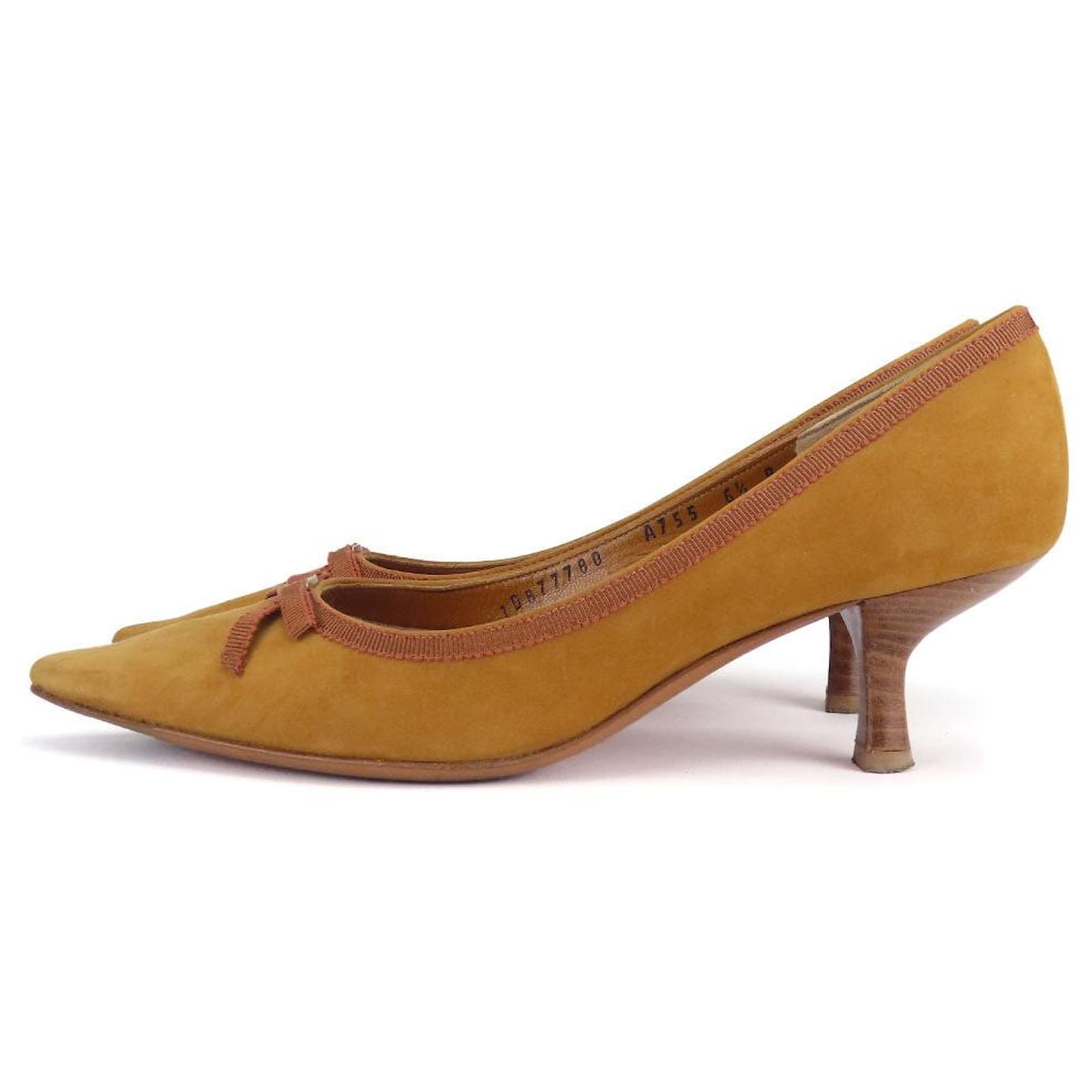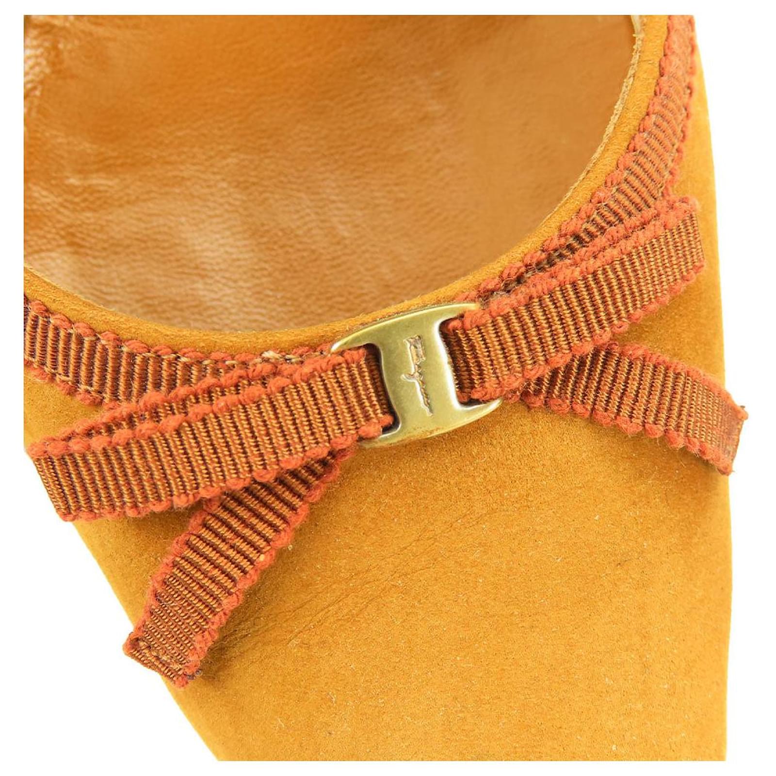 – General information -\nBrand : Salvatore Ferragamo\nItem name : Salvatore Ferragamo Suede Pumps Camel\nModel number :\n- Design -\nType : Shoes\nMaterial : Leather\nColor : Brown\nGender : Female\n- Size -\nSize :\nInstep width : 7.5\nInsole total length : 23.5\nHeel : 5.5\nShoe size(JP) : 6 1/2\nColor : Camel\nMaterial : Suede\n- Inventory -\nSerial Number : null\nSKU : 120250000078408A0025502978\n- Included Items -\nAccessories : null\n*Before purchasing, please refer to the images of the accessories included with the item.\n- Condition -\nCondition : Good Condition\nRank : Used A Used condition with obviously scratches and stains.\nCondition Notice : Before purchasing, please refer to the images for the exact condition of the item.