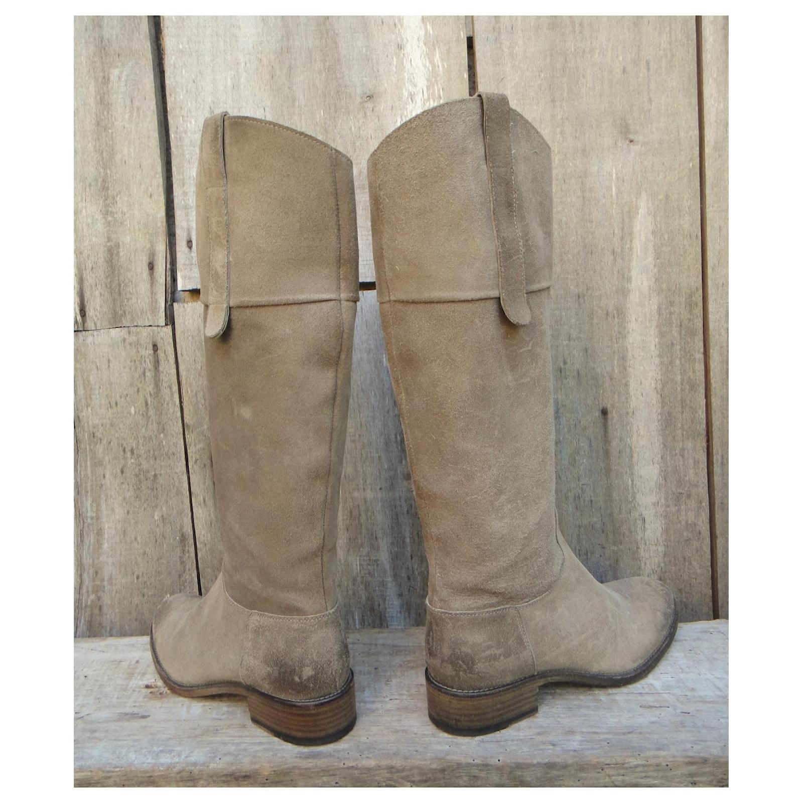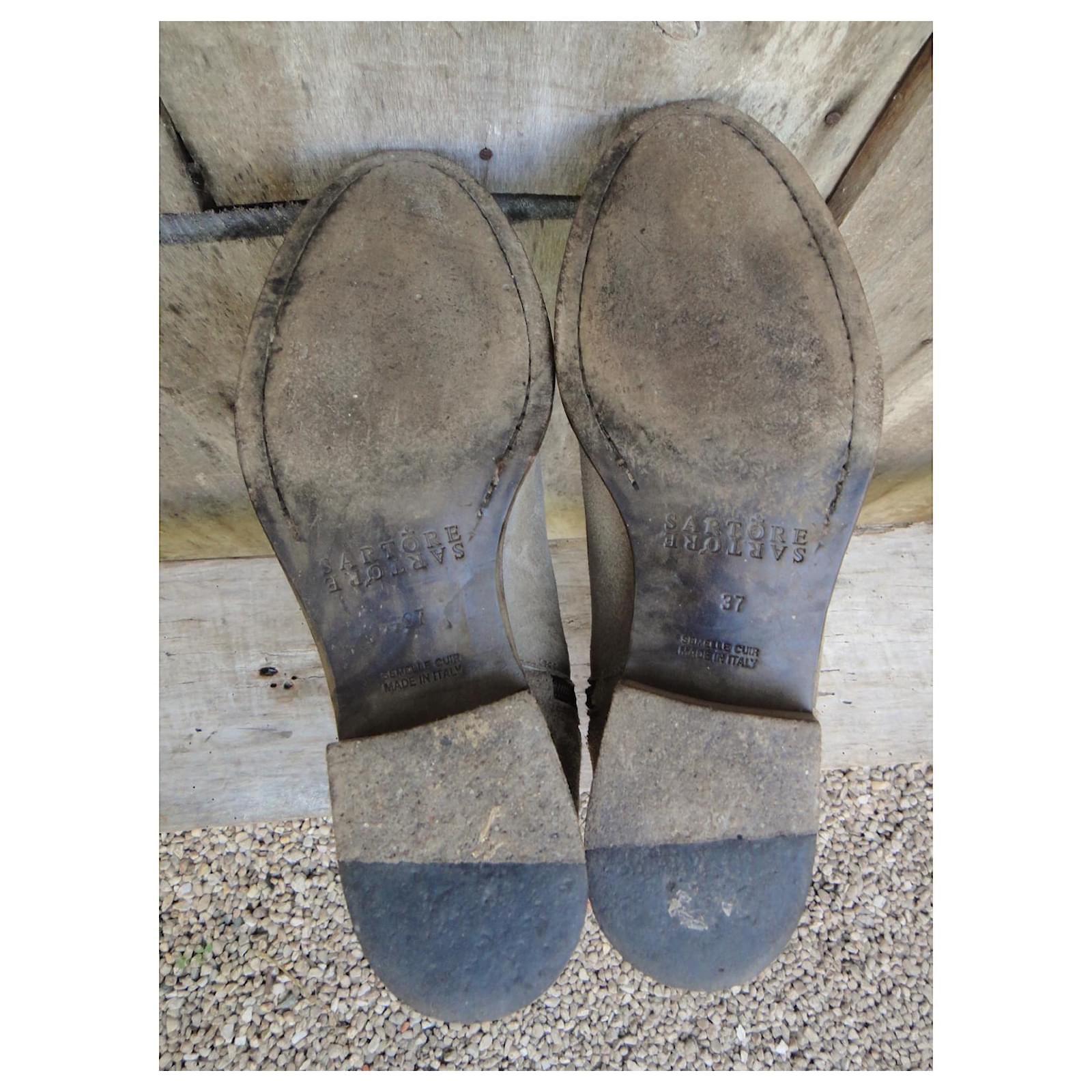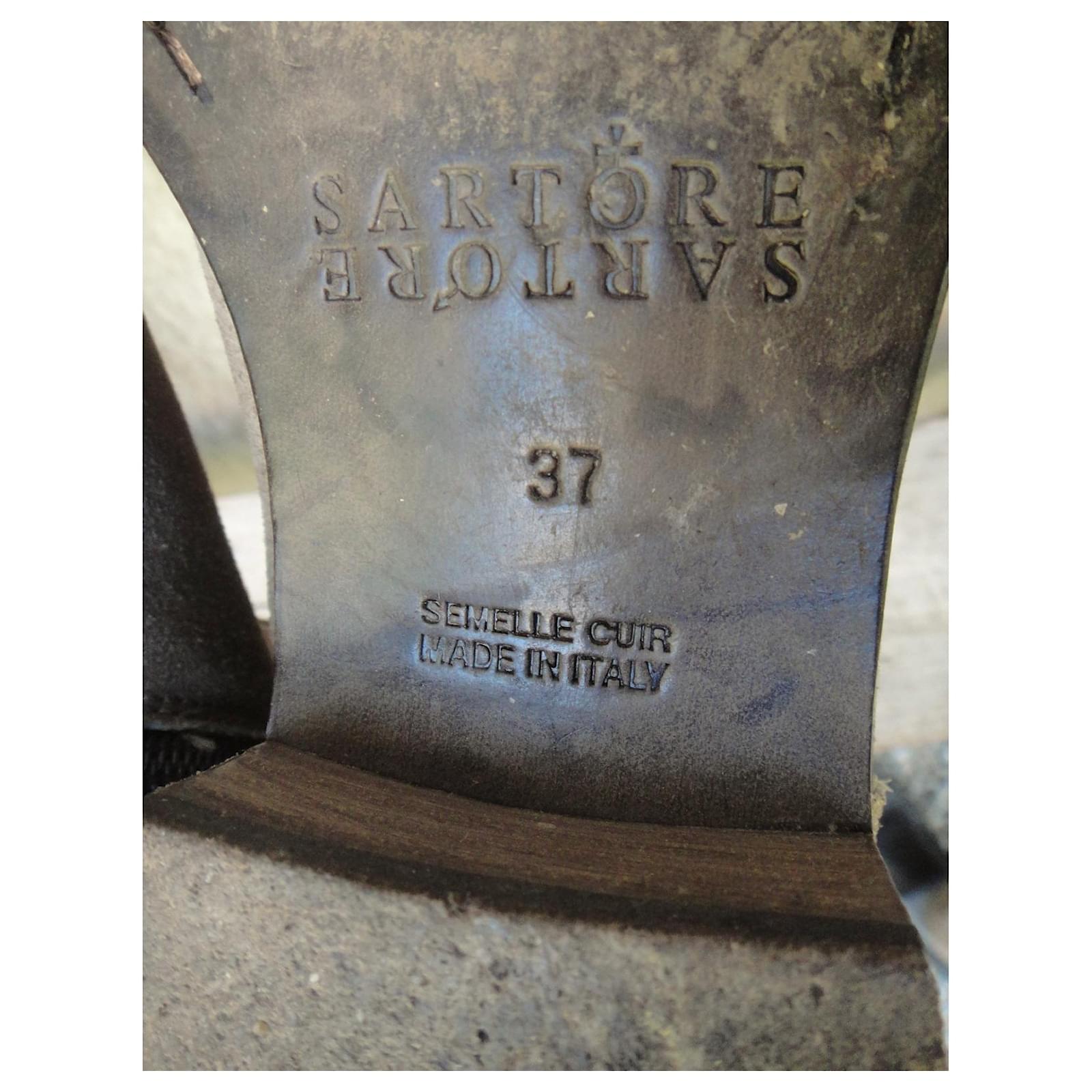 – Sartore boots\r\n- shoe size 37 It, correspond to 38 fr, inner length 24,5 cm\r\n- Very good condition, barely worn\r\n- leather-lined nubuck upper with zipped opening on the ankle, first leather, Blake stitching on leather sole\r\n- heels of 3,5 cm, stem height 36 cm, boot ride 36,5 cm\r\n- Made in Italy\r\n- the riding boot in the Sartore version combines the sobriety of contemporary Parisian chic and the excellence of the best Italian artisan productions for a result of absolute luxury\r\n2108023