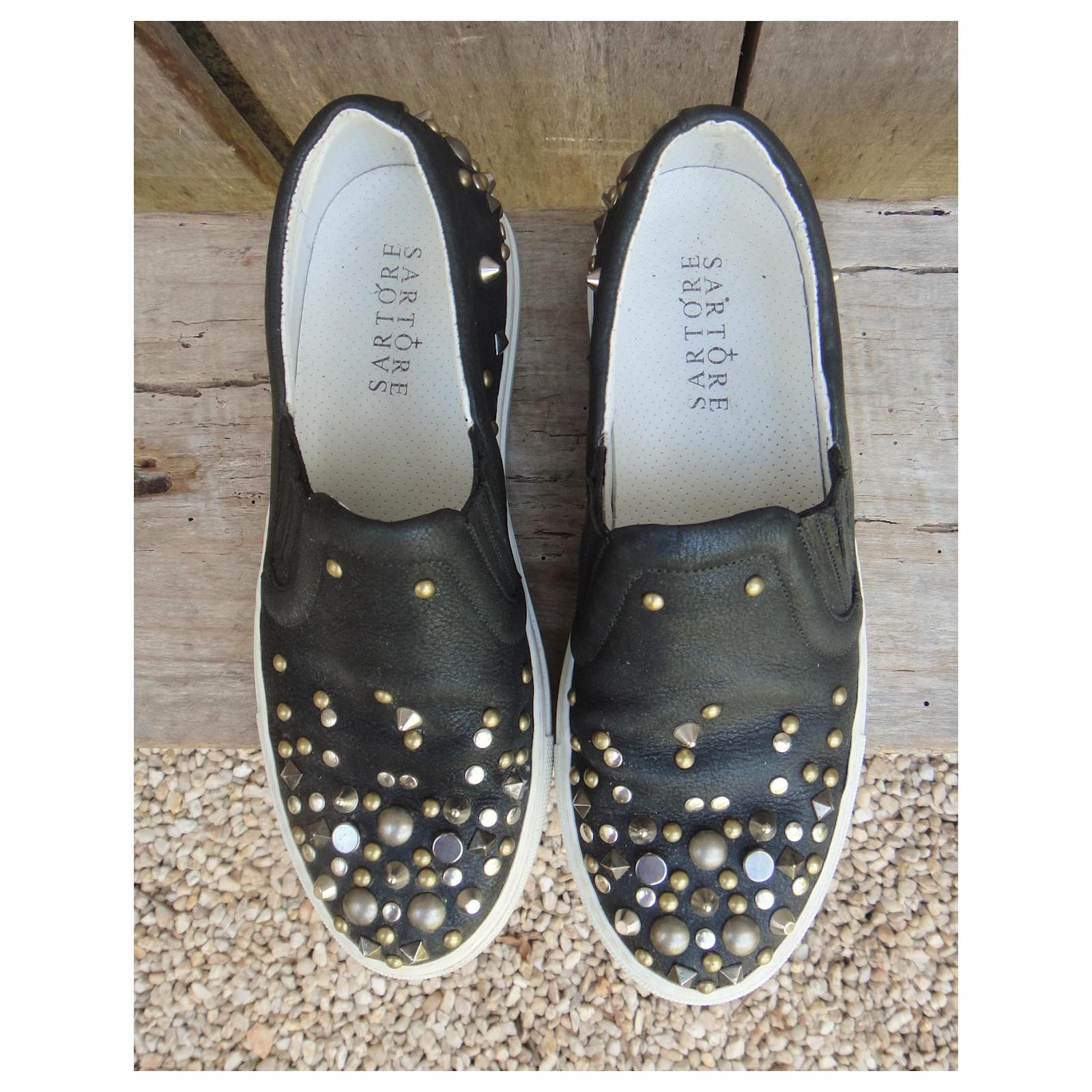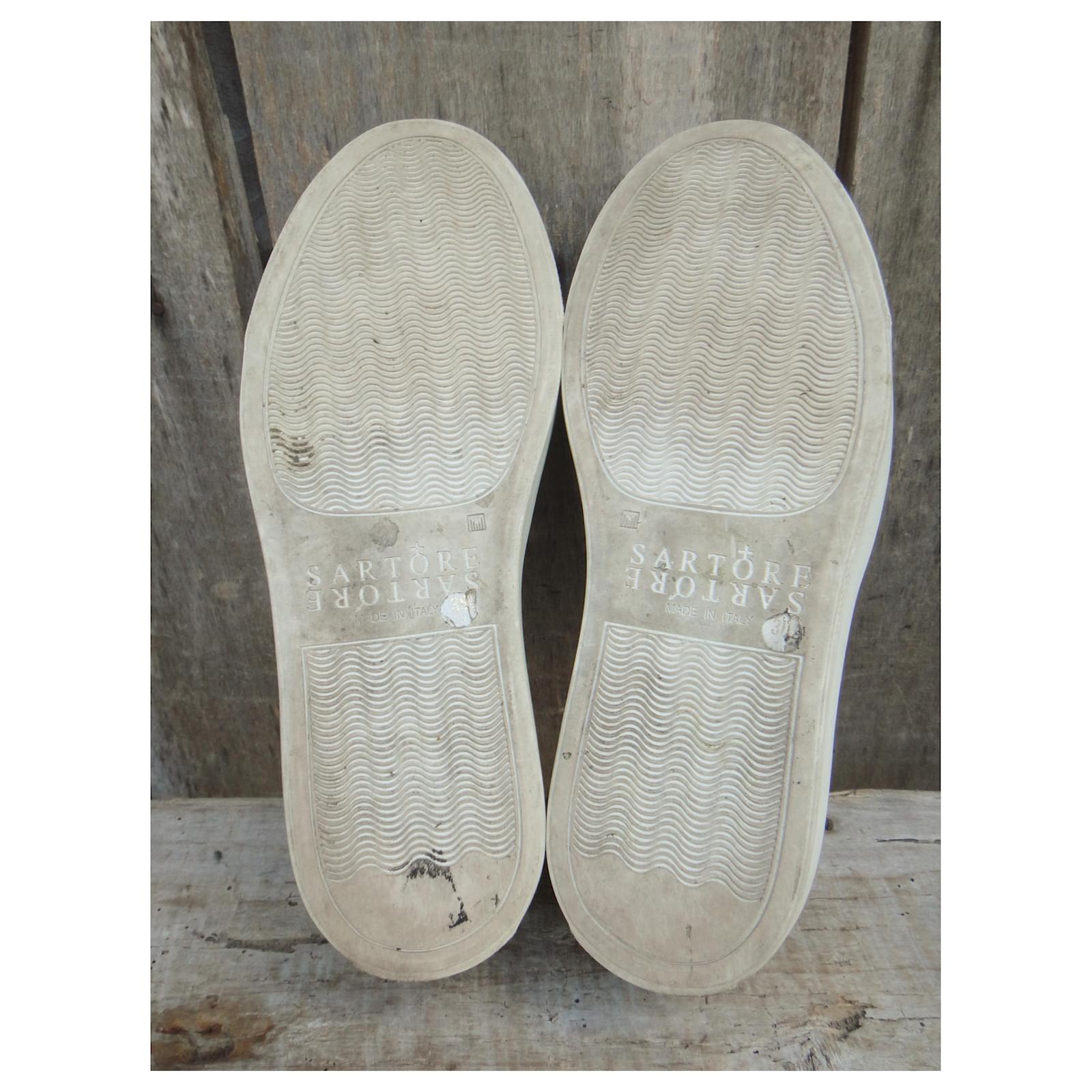 – Sartore sneakers\r\n- shoe size 36 1/2, inner length 24 cm\r\n- excellent condition, Worn once\r\n- sold in their dustbag\r\n- studded leather upper lined with leather, first leather, Elastomer sole\r\n- here is a pair of excellent sneakers: perfect made in Italy realization, and impeccable stylistic treatment, well worthy of the house of Sartore\r\n009002