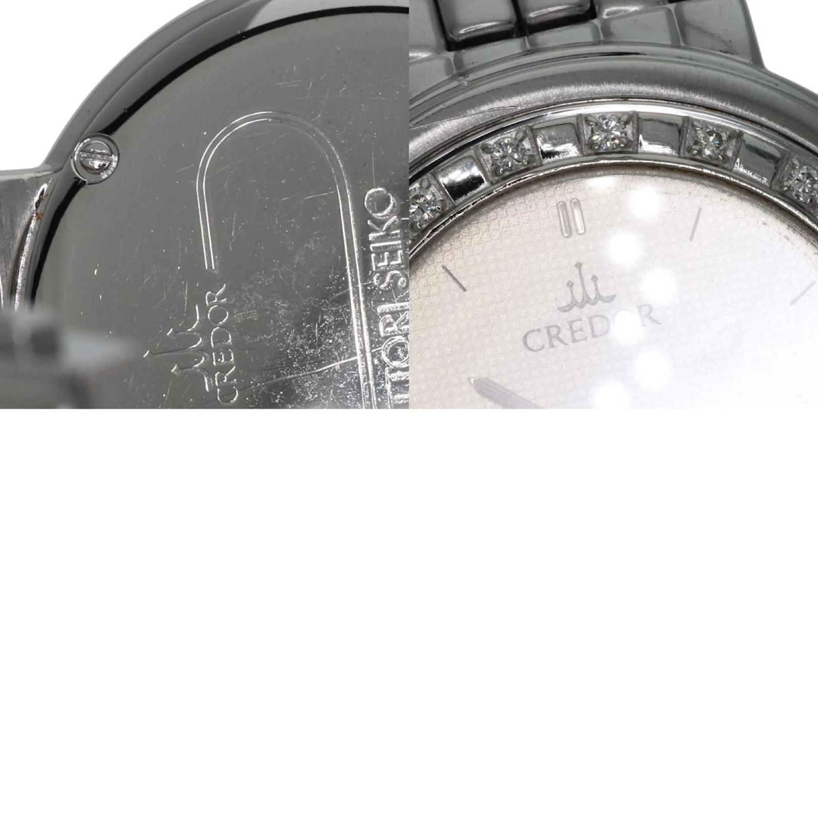 The Seiko 8N70-6030 Credor Diamond Watch is a men’s wristwatch crafted from stainless steel, featuring a silver dial. With a case diameter of 33mm and designed for a wrist size of 17cm (6.69 inches), this watch combines elegance with functionality. \n\nThis pre-owned timepiece is in very good condition, classified as Rank A, with some moderate scratches on the case and bracelet, and slight scratches on the crown and bezel. The glass is free from scratches, ensuring clarity. \n\nPlease note that there are no included accessories, and potential buyers are encouraged to review the provided images for a detailed view of the watch’s condition.