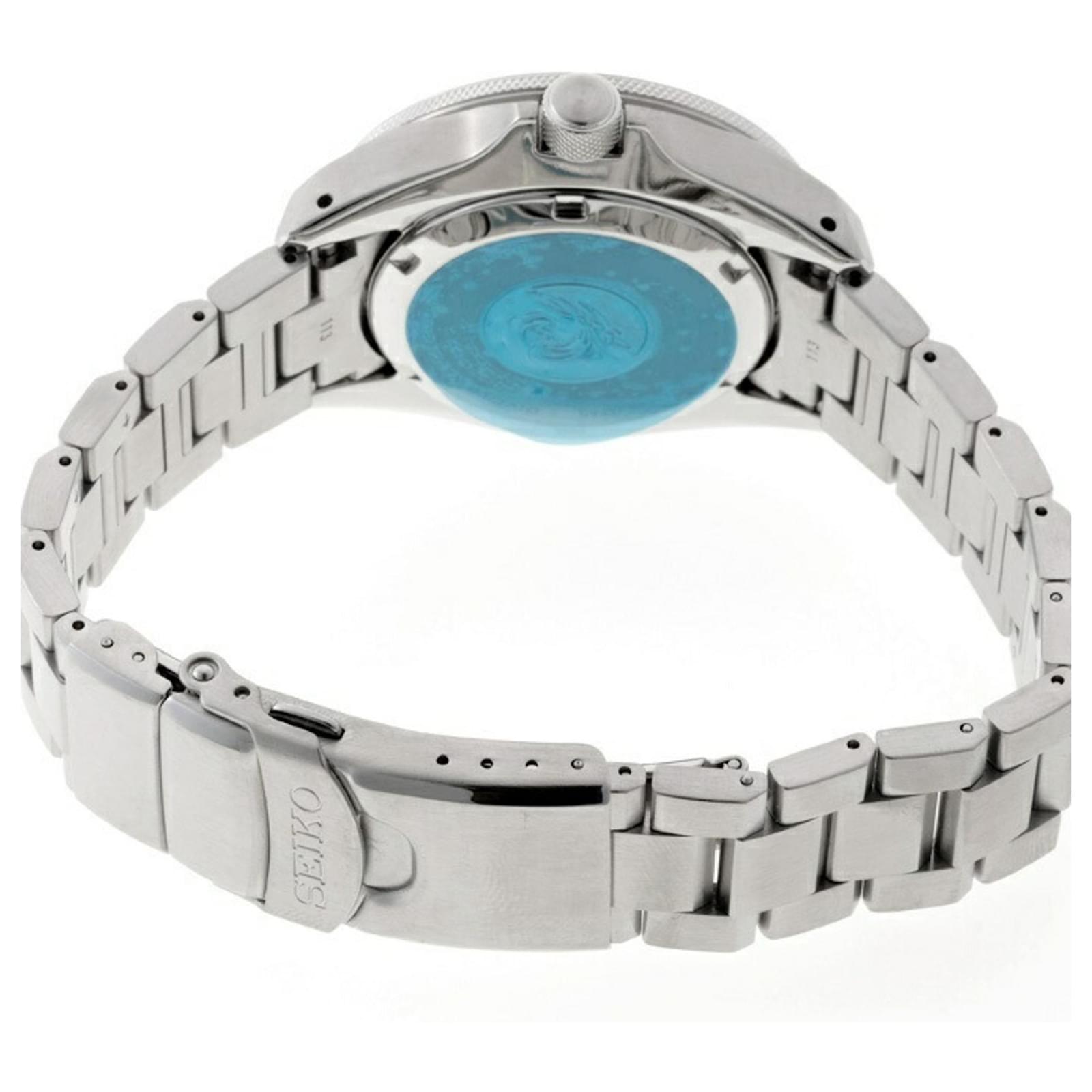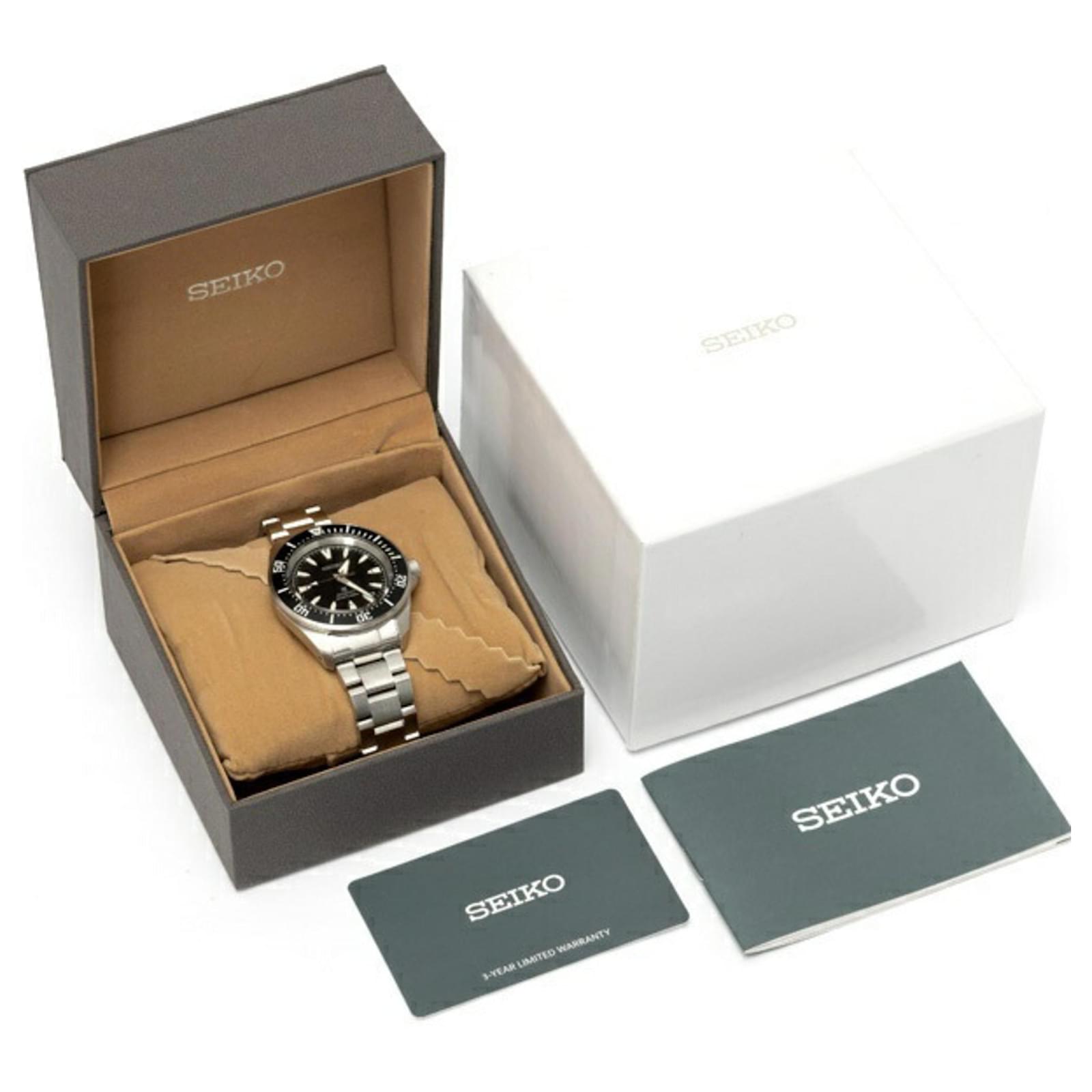 The Seiko Prospex Diver Scuba SBDY131 is a self-winding automatic wristwatch designed for durability and style. It features a black dial housed in a stainless steel case, complemented by a stainless steel band. The watch has a case diameter of 41.7mm and is suitable for a wrist size of up to 21cm (8.26 inches). \n\nThis pre-owned timepiece is in very good condition, with insignificant scratches on the bezel and case, while the glass and dial remain free from any scratches or deterioration. The watch comes with its original booklet, certificate, and both inner and outer boxes. Potential buyers are encouraged to review the provided images for a detailed view of the item’s condition and included accessories.