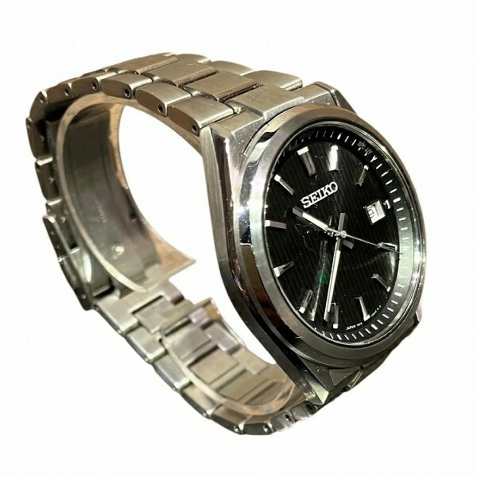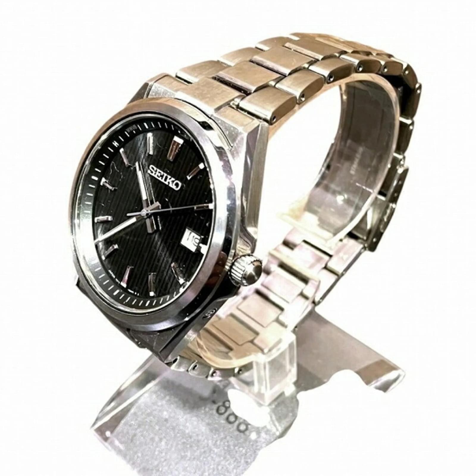 The Seiko Selection SBTM351 is a men’s wristwatch featuring a sleek black dial and a durable stainless steel case and band. This timepiece operates on a radio wave control solar movement, ensuring accurate timekeeping. It has a case diameter of 39mm and is suitable for a wrist size of up to 20cm (7.87 inches). \n\nThis watch is in used condition, classified as like new, with no visible scratches on the bezel, case, dial, or glass. The item comes with its inner and outer boxes, along with a warranty. Potential buyers are encouraged to review the provided images for a detailed view of the watch’s condition and included accessories.