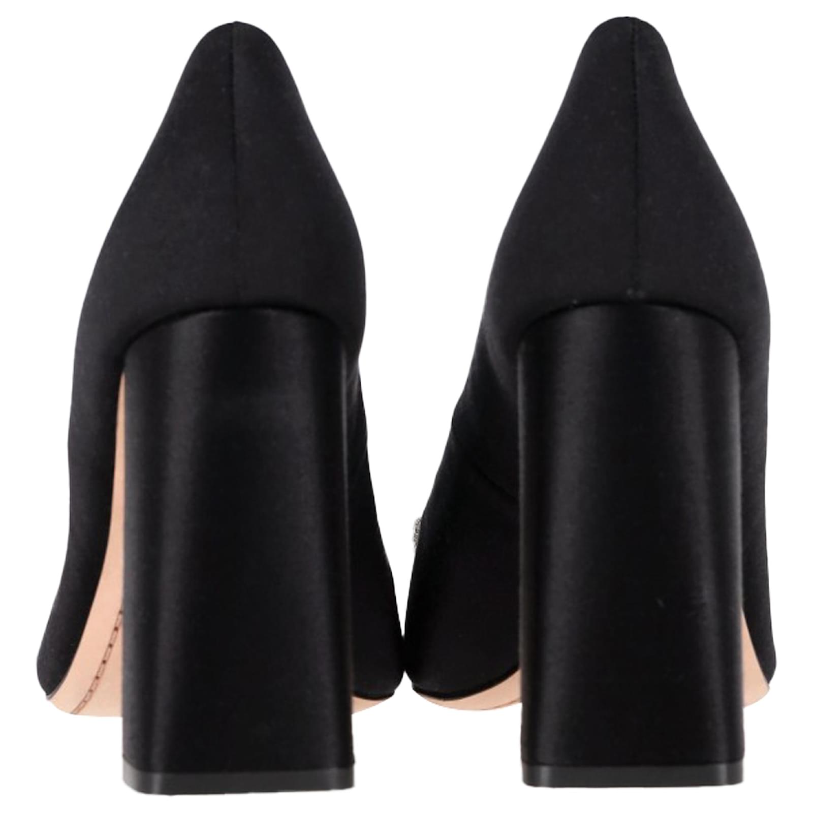 Add a touch of whimsical glamour with the Sophia Webster Embellished Block-Heel Pumps in luxurious black satin, adorned with sparkling crystal accents. The sturdy block heel offers comfort without compromising on elegance, making them perfect for special occasions or evening events. **Styling tip:** Pair them with a sleek black dress or tailored jumpsuit to let the embellishments shine as your standout accessory.\n\nSophia Webster Embellished Block-Heel Pumps in Black Satin\n\nCondition: Excellent\nSigns of wear: No visible sign of wear. No Mark at insole., Unused or used once, but as good as new. Very light mark at soles.\nPackaging: Dust bag\nColor: Black\nMaterial: Satin\nSize: EU | 39\nMeasurements: Heel height: 100; Insole length: 280\nSKU: NAPPUGBSH498103W \n Product Id: 498103 \n