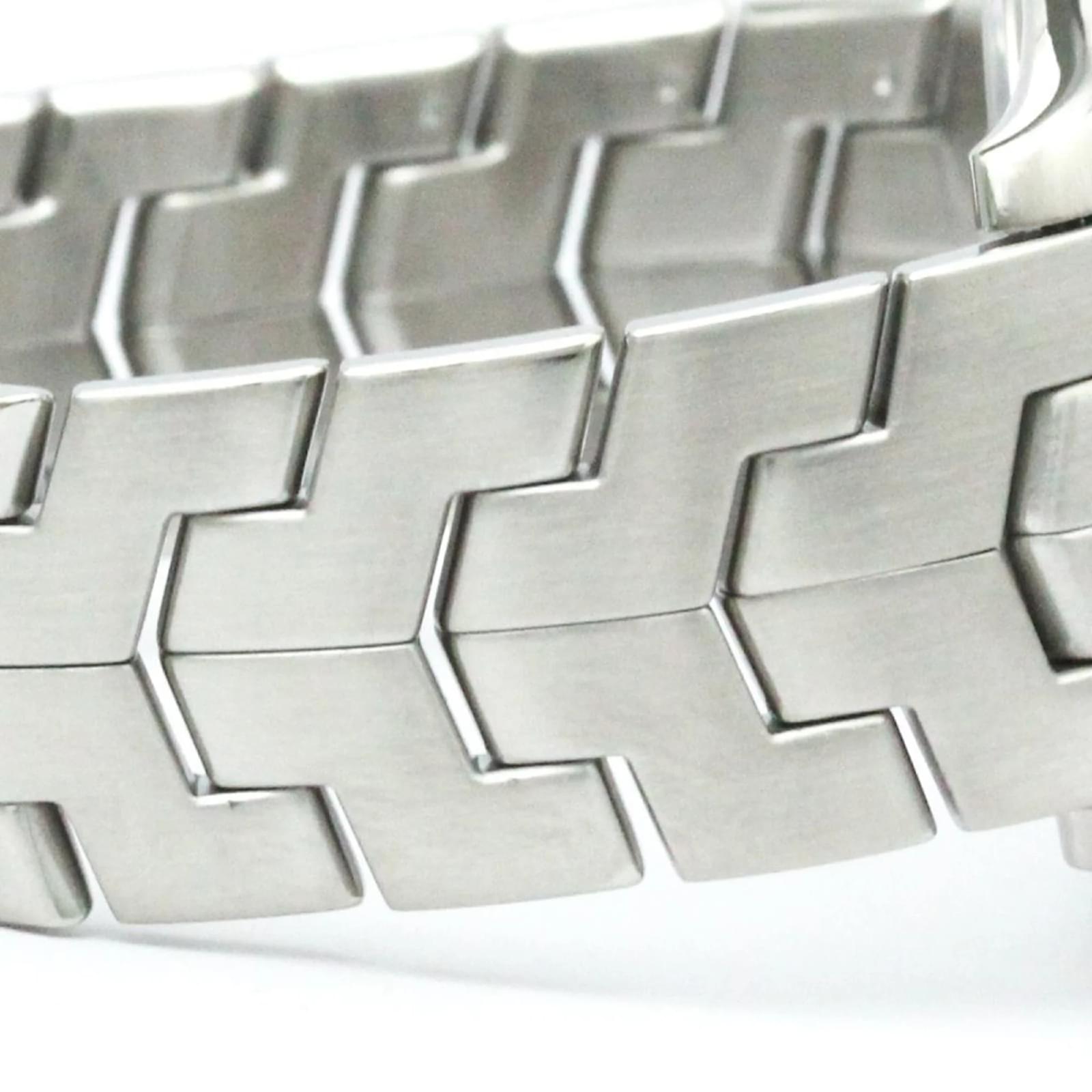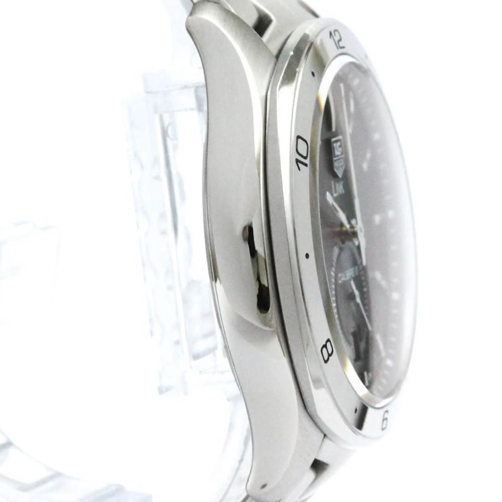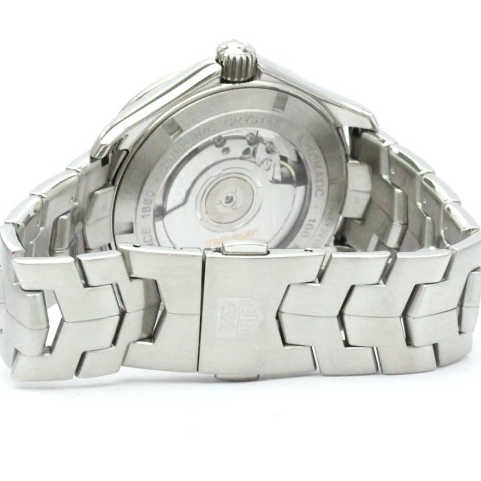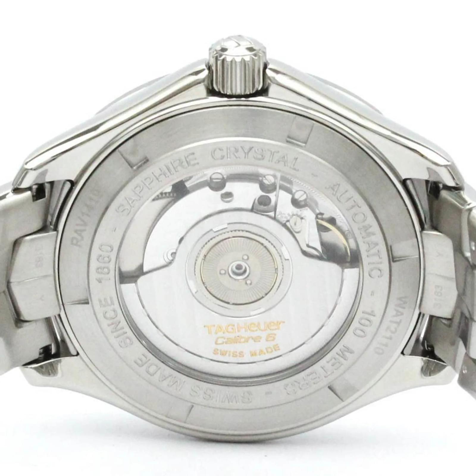 The Tag Heuer Link Calibre 6 is a sport wristwatch designed for men, featuring a sleek black dial and a stainless steel case. With a case diameter of 40mm, this self-winding automatic watch is both functional and stylish, offering a date function for added convenience. The watch is in very good used condition, showing insignificant signs of wear, with no scratches on the glass or dial. The stainless steel band fits a wrist size of 15.5cm (6.1 inches) and has also been polished to maintain its appearance. This model, identified by the code WAT2110, weighs 130g and is part of the Tag Heuer Link line.