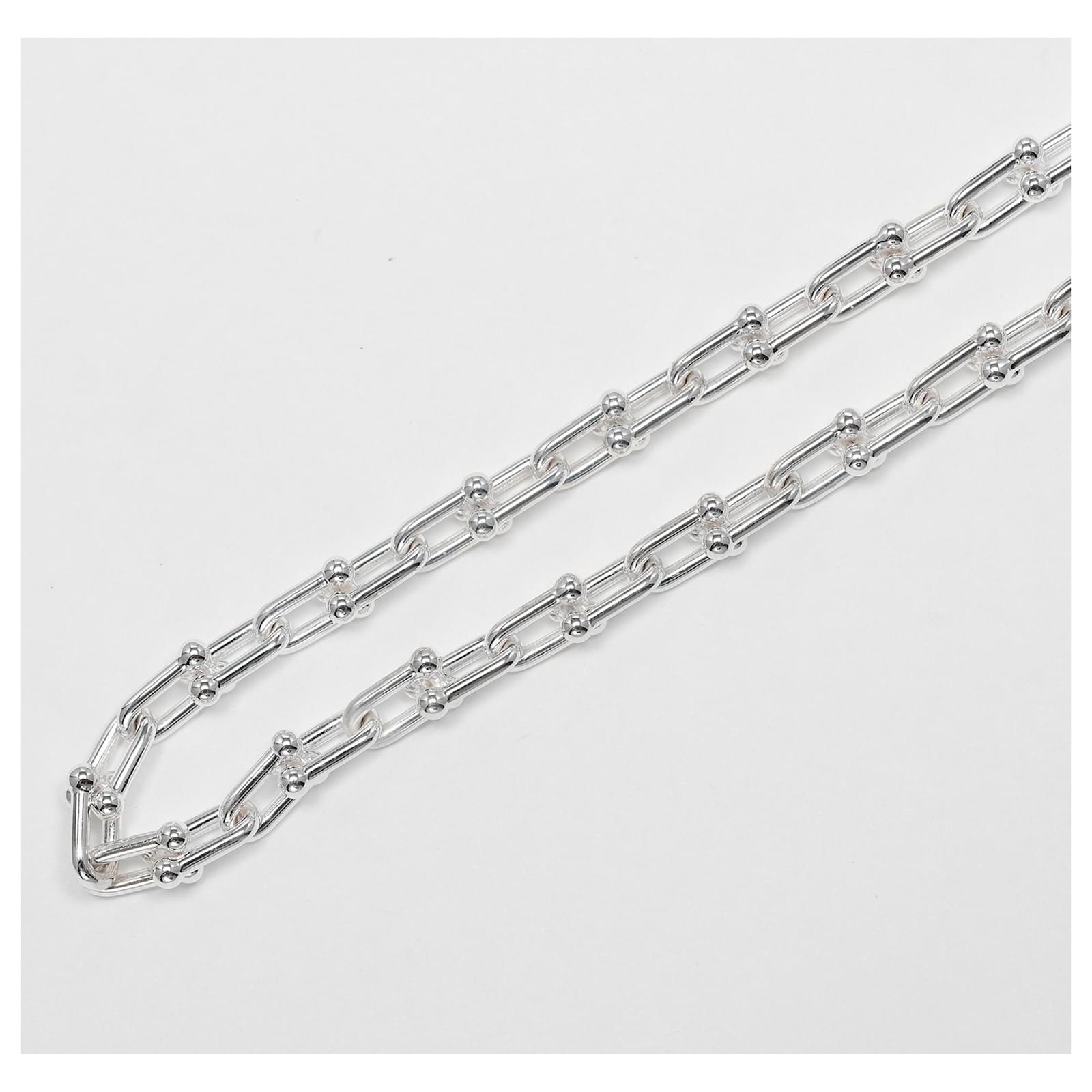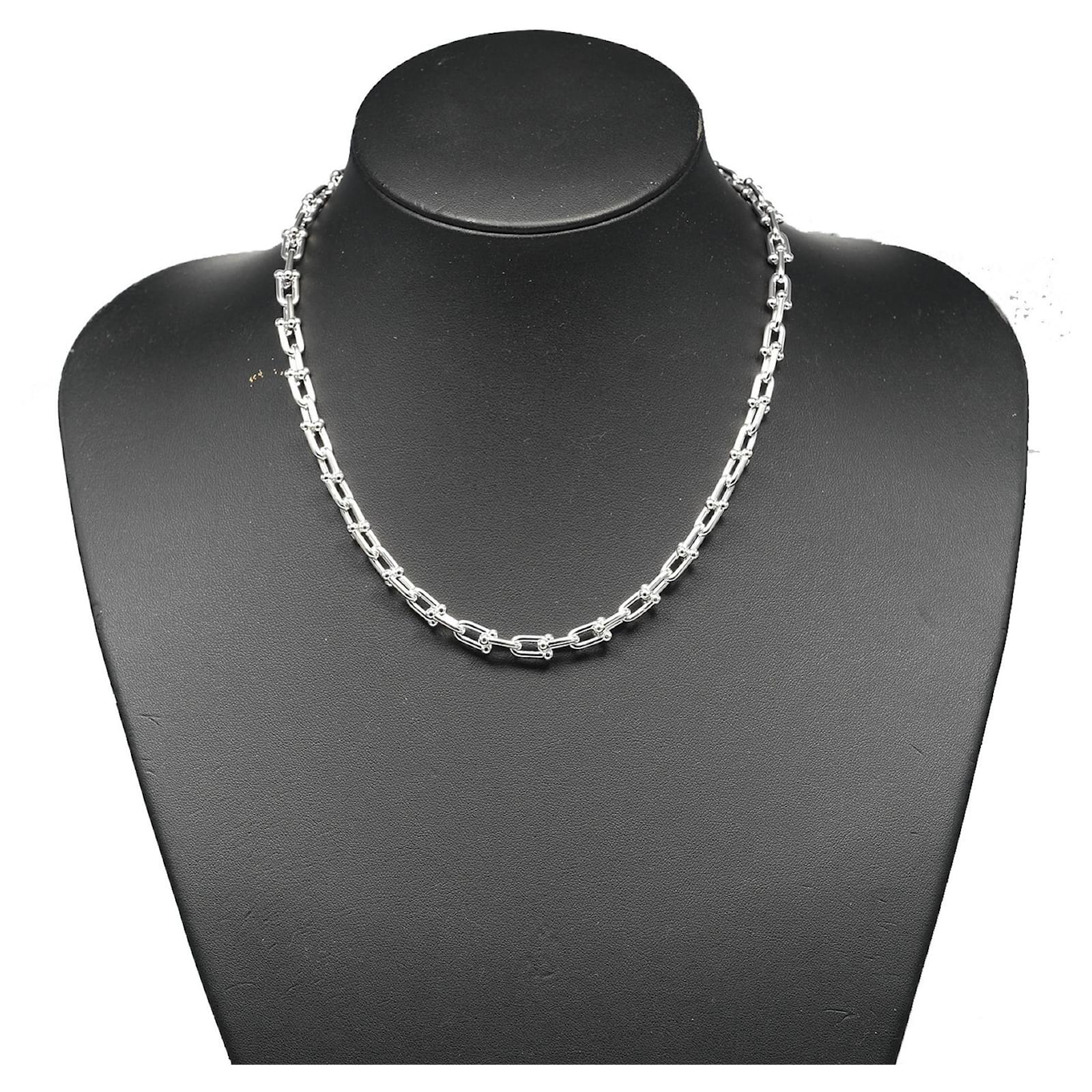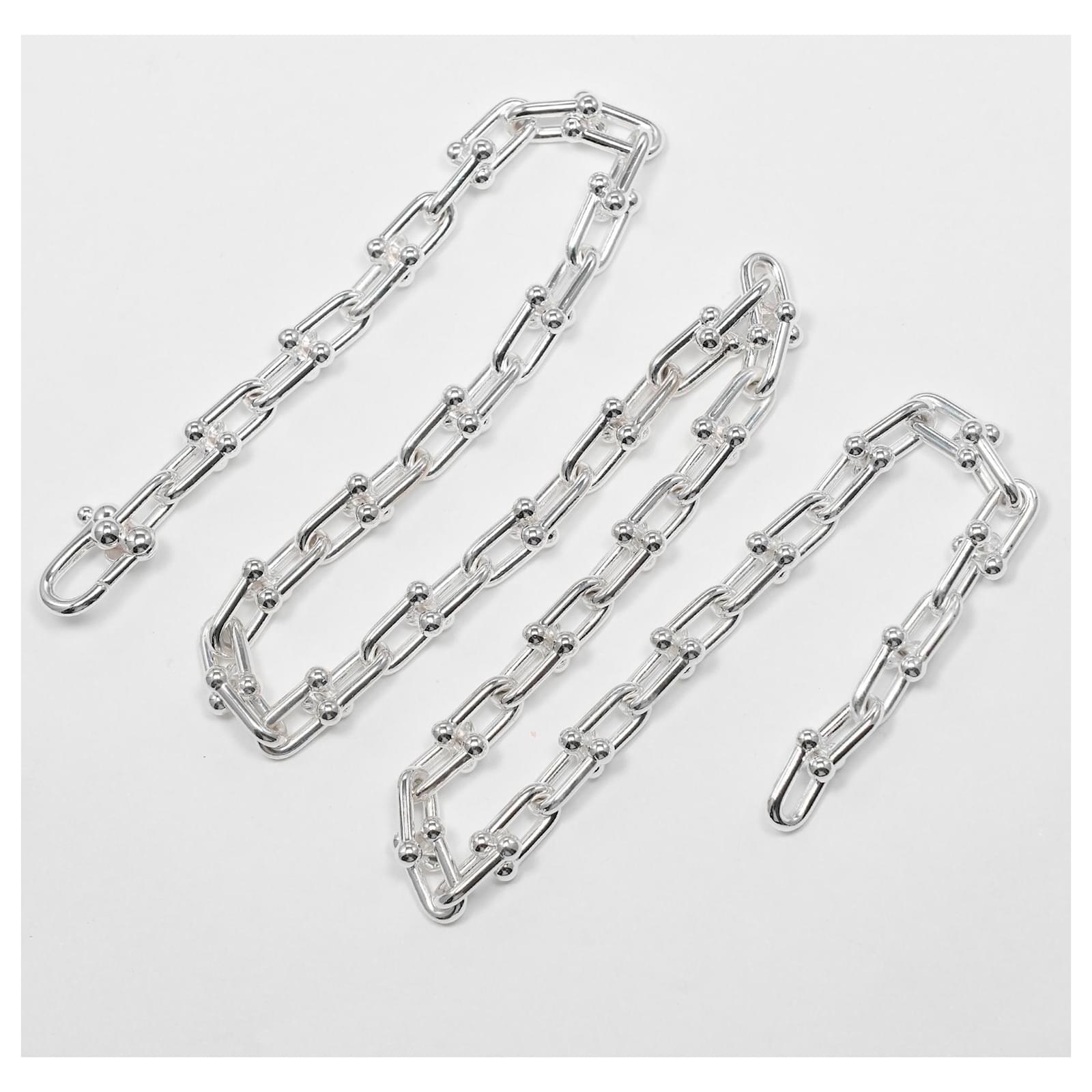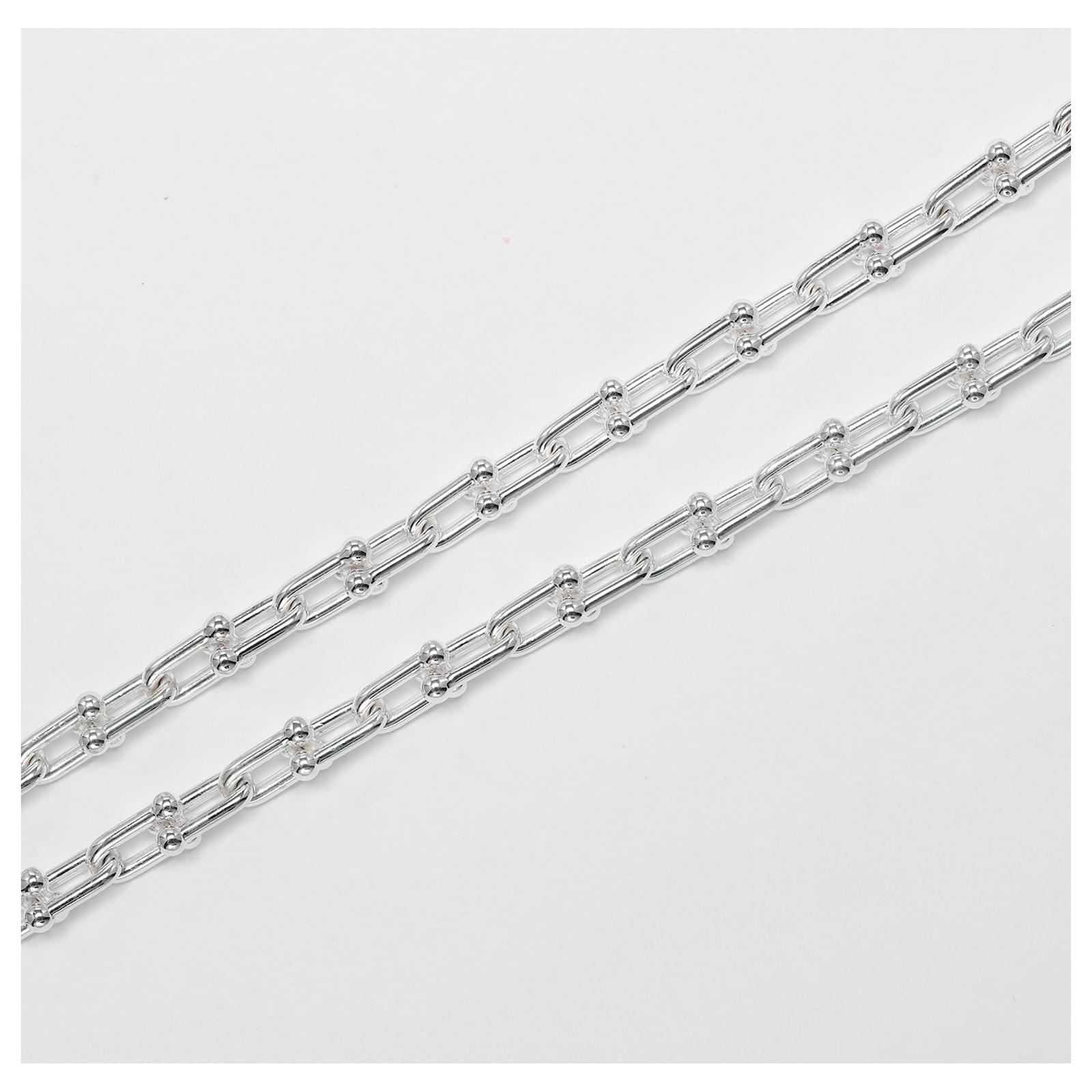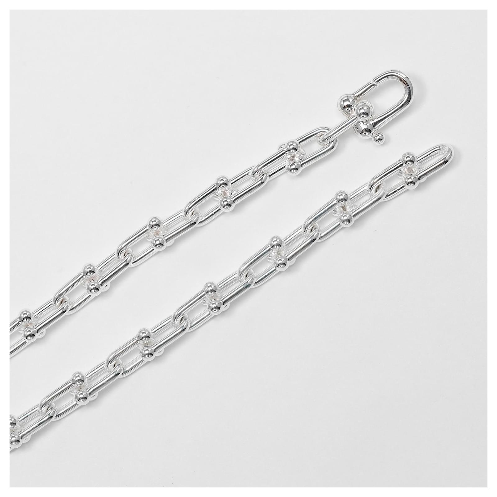 This Tiffany & Co. Hardware Small Link Necklace is crafted from 925 silver and features a neck circumference of 45.7 cm (17.99 inches). Weighing approximately 1.7 oz (44.8 g), this necklace is in used condition, described as like new with hardly any traces of usage. The item has been polished and shows insignificant overall traces of use, scratches, and dirt. Please refer to the images for the exact condition and any included accessories, as none are provided with the necklace.