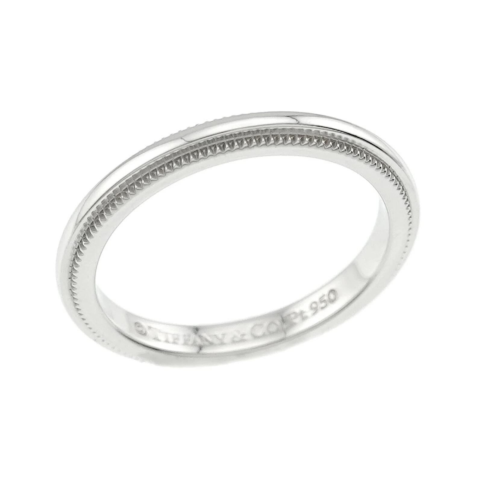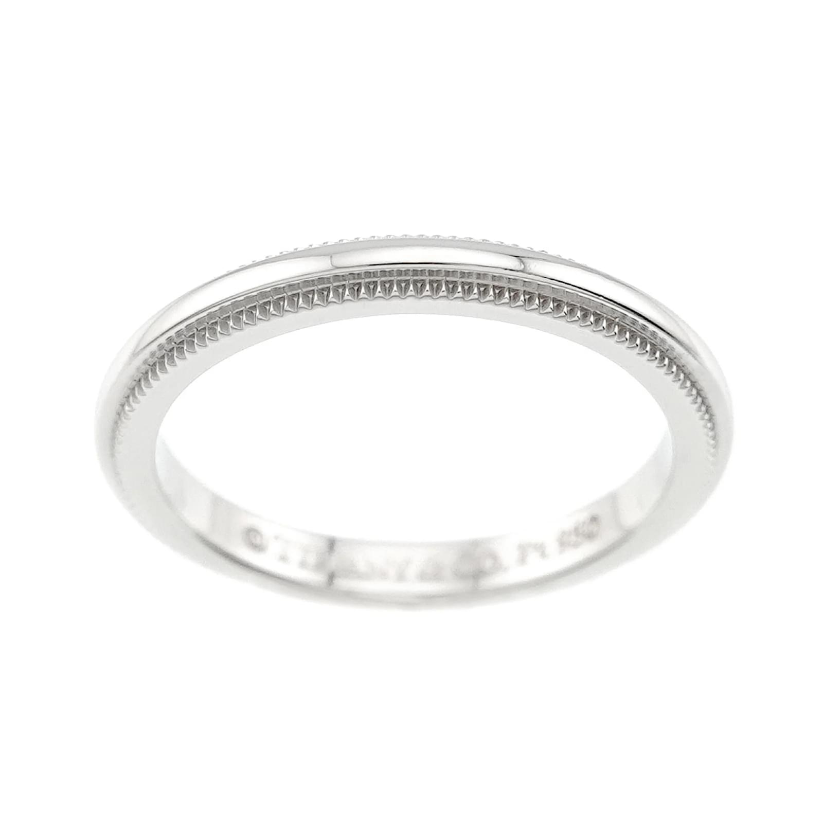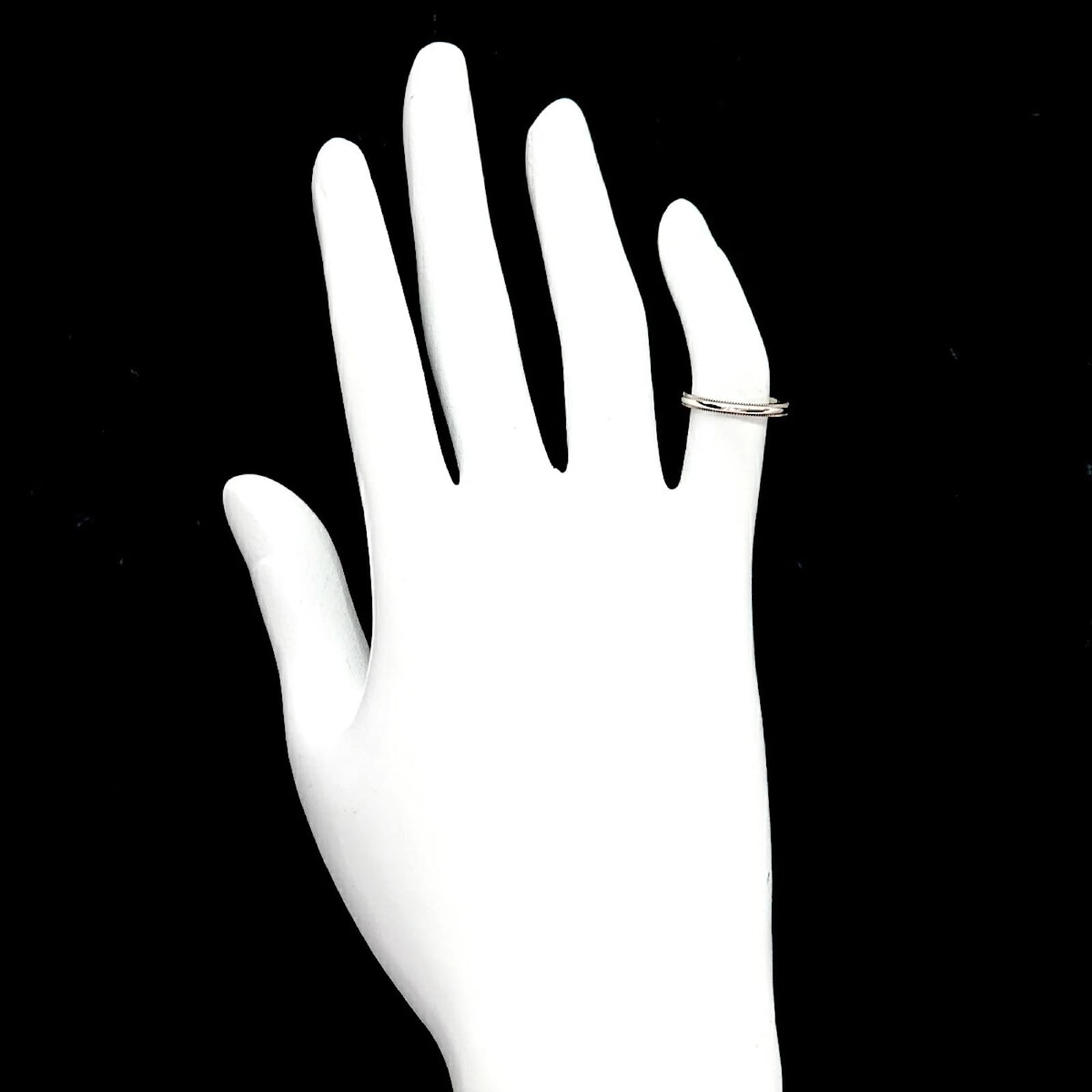 This Tiffany & Co. Milgrain Ring is crafted from Platinum 950 and features a width of 2mm. It is a band ring available in a US size 3 and a Japanese size 4. The ring is in used condition, rated as Rank S, indicating it is in mint condition with insignificant traces of use, scratches, and dirt. The item has been polished for maintenance. Please refer to the images for a detailed view of the ring’s condition and any included accessories, though none are provided with this item.