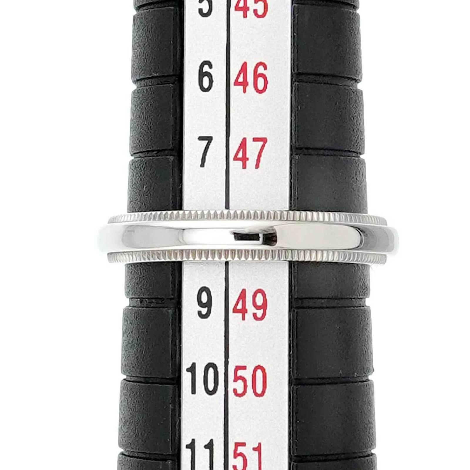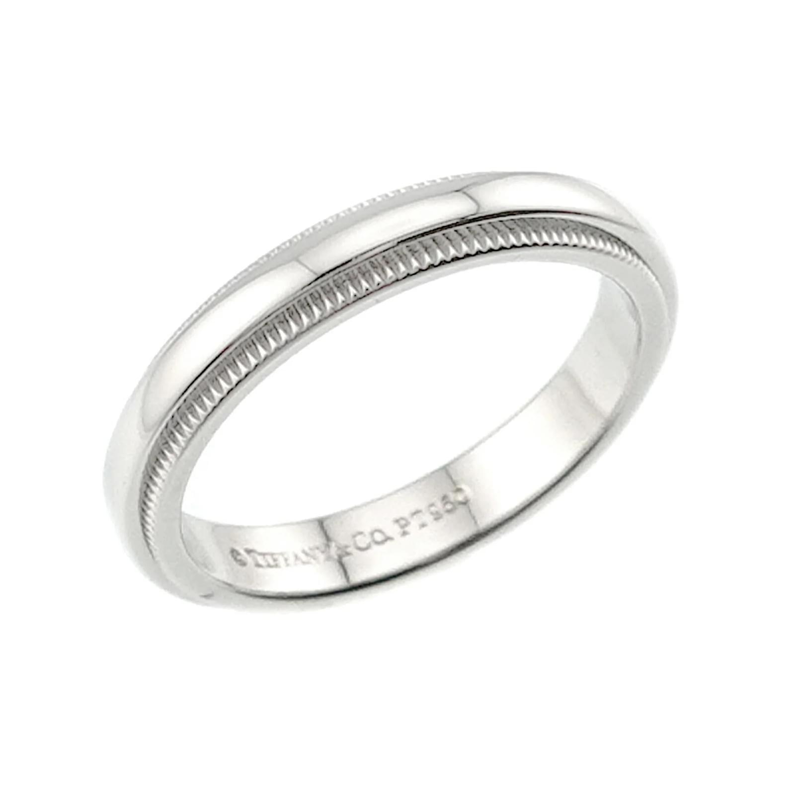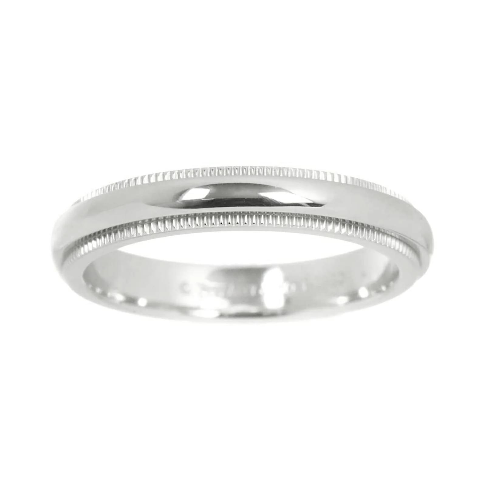 This Tiffany & Co. Milgrain Ring is crafted from Platinum 950 and features a width of 3mm. It is a band ring available in a US size 4.5 (JP size 8). The ring is in used condition, rated as Rank S, indicating it is in mint condition with insignificant traces of use, scratches, or dirt. The item has been polished for maintenance. Please refer to the images for a detailed view of the ring’s condition and any included accessories, though none are provided with this item.