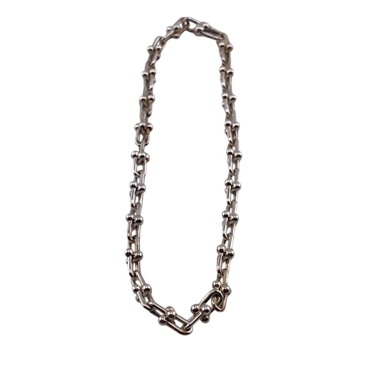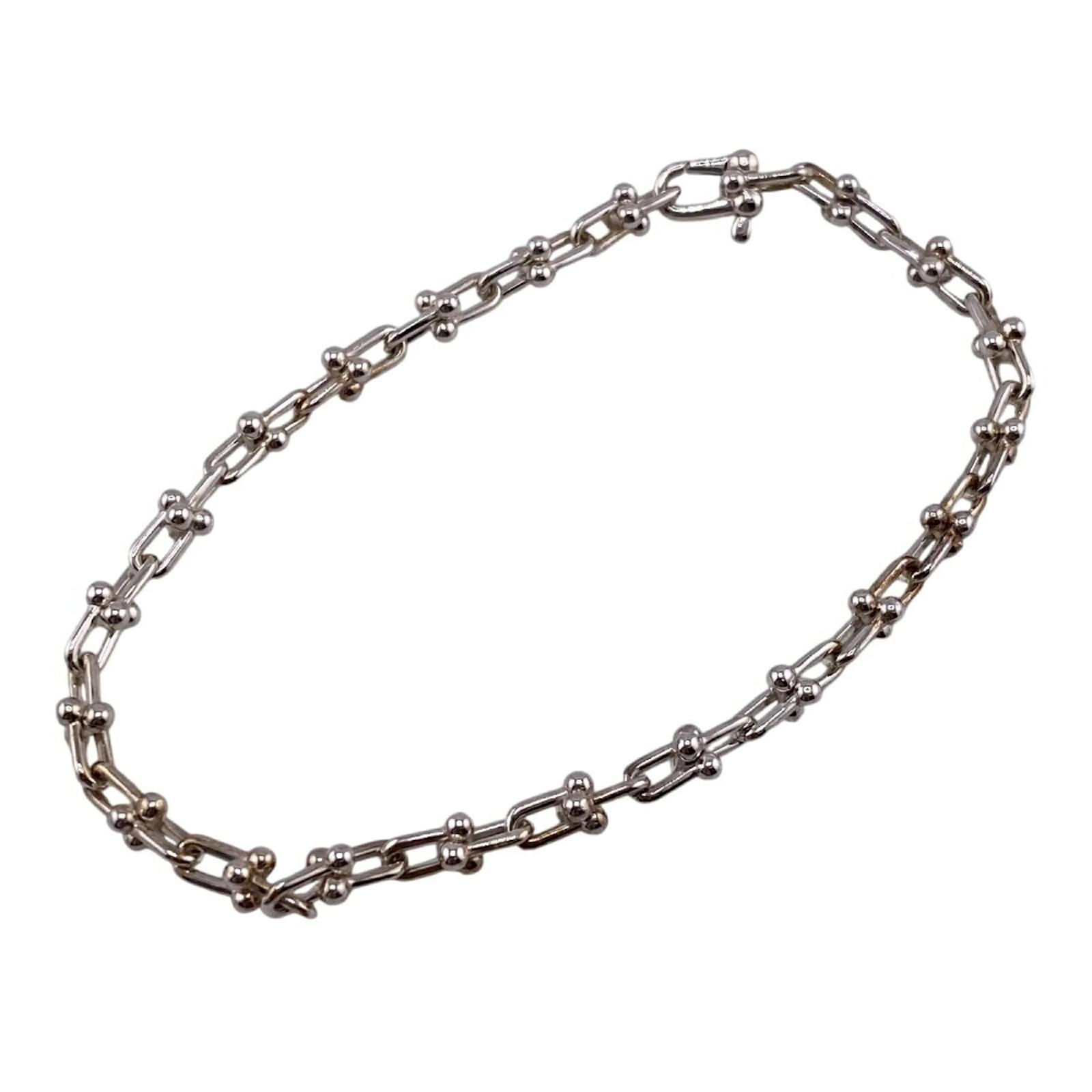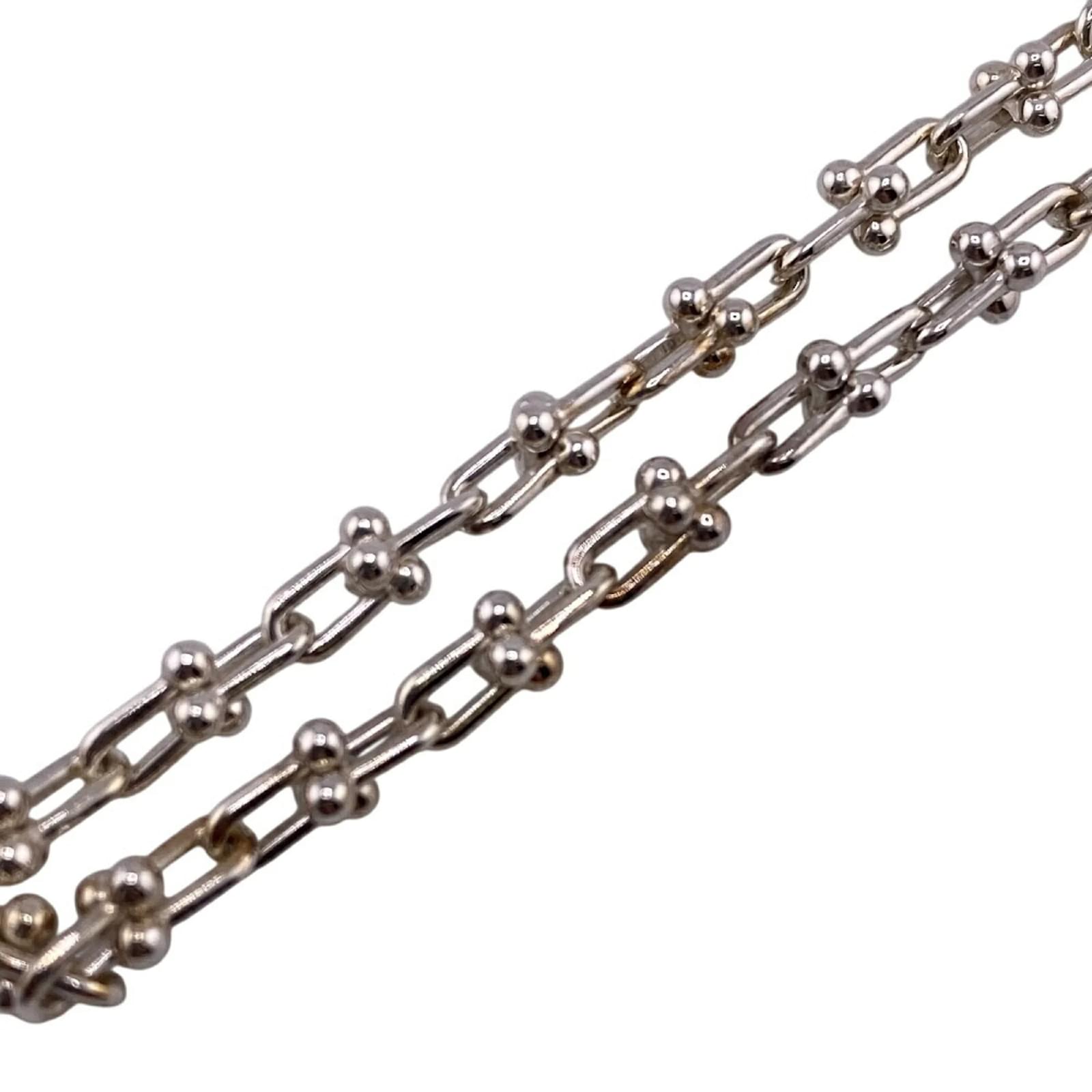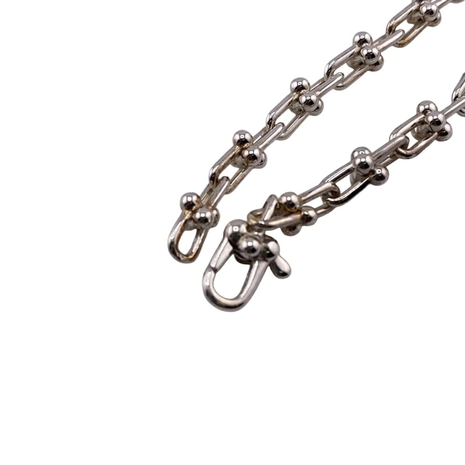 This Tiffany & Co. small link bangle, model code 9466_0222, is crafted from silver and features a sleek design. The bangle measures a total length of 18cm (7.08 inches) with a width of 2mm (0.07 inches). It is categorized as used but is in very good condition, showing only insignificant scratches and traces of usage. The item comes with its original box and dust bag. Potential buyers are encouraged to review the provided images for a detailed view of the item’s condition and included accessories.