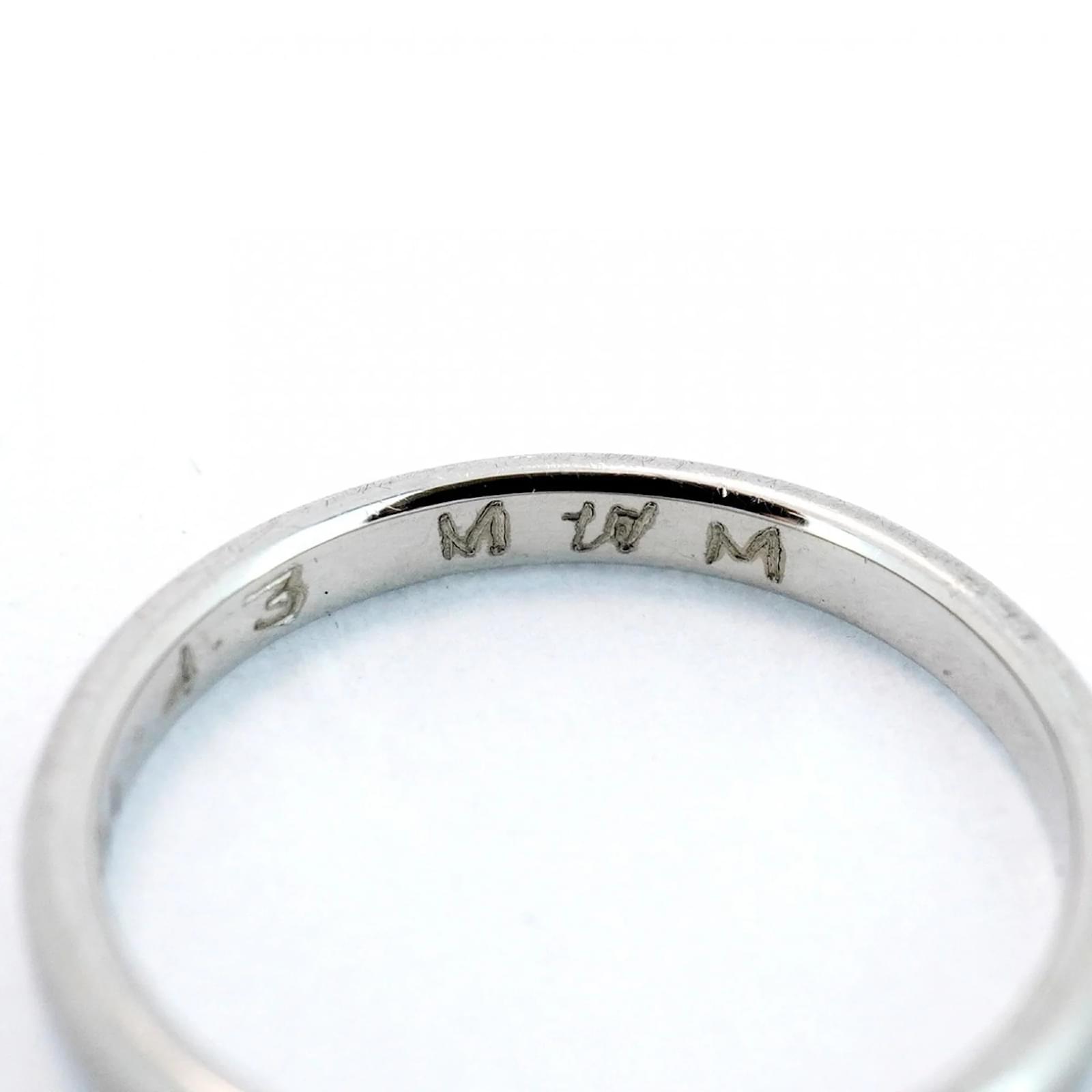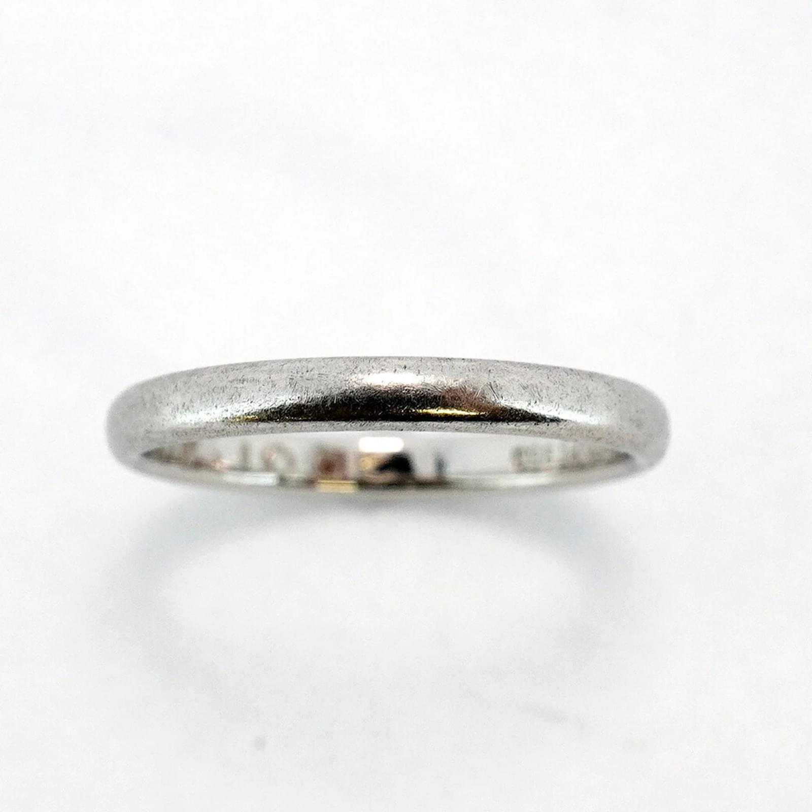 This Tiffany band ring is crafted from Platinum 950 and is designed for ladies. It is a size 5 in Japanese sizing, equivalent to a US size 3.5. The ring is pre-owned and classified as used (good condition), with some traces of usage, including slight scratches and dirt. It features an engraving dated 2001 and comes without any additional accessories. Potential buyers are encouraged to review the provided images for a detailed view of the item’s condition.