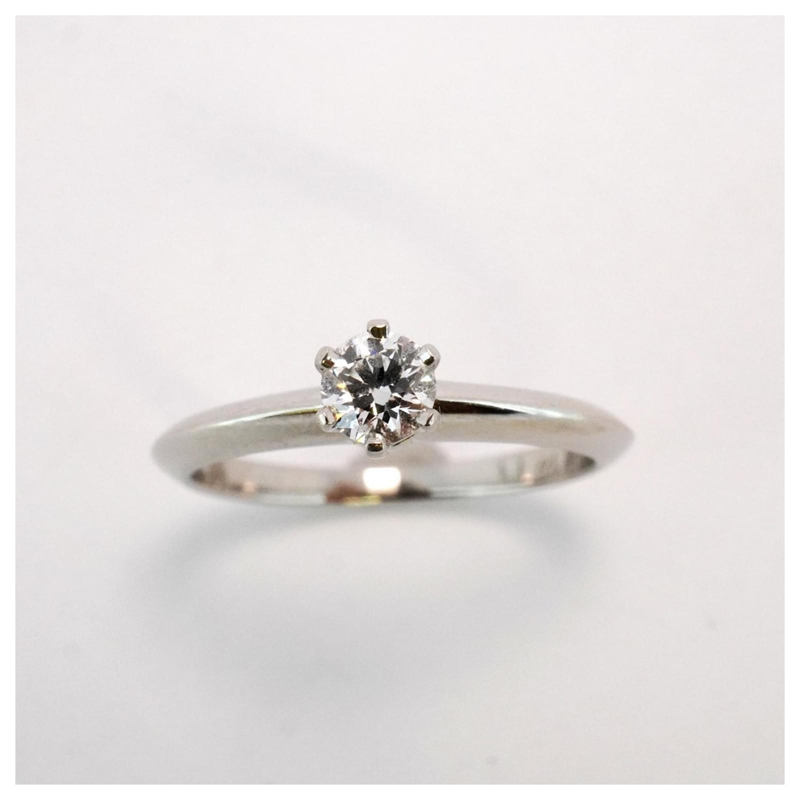 This Tiffany band ring is crafted from Platinum 950 and features a solitaire diamond weighing 0.22 carats. Designed for ladies, it is available in a Japanese size 9, which corresponds to a US size 5. The ring is pre-owned and classified as used (good condition), with slight traces of usage, including minor scratches and dirt. It bears the initials \”H to H\” inscribed on it. Please refer to the images for a detailed view of the item’s condition, as no accessories are included with the purchase.