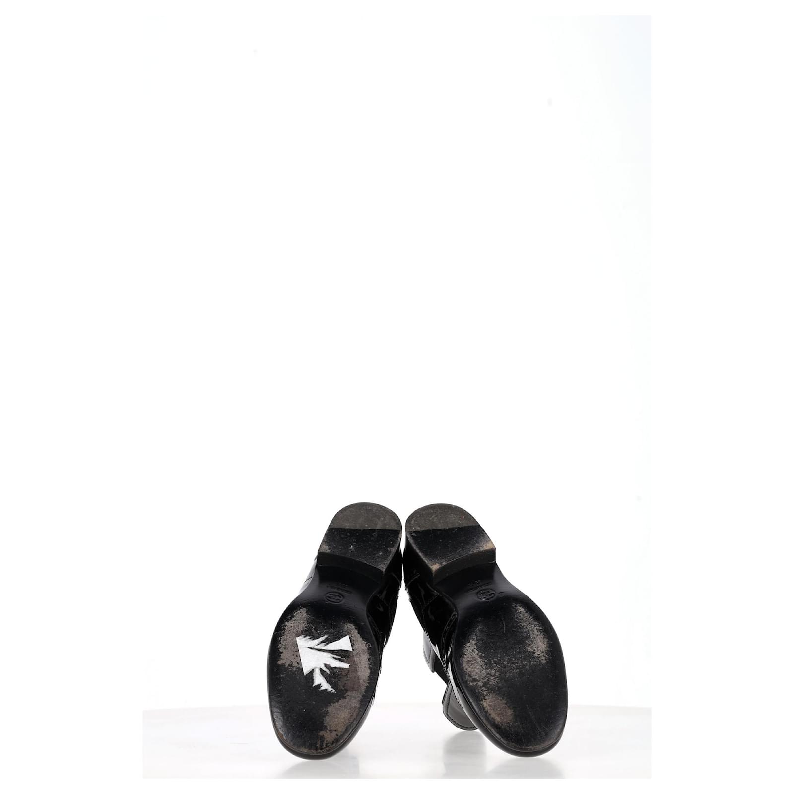 Refined with a modern edge, these Chanel Ankle Boots in black patent calfskin offer a sleek silhouette and timeless sophistication. Featuring almond toes, perforated accents, and side elastic panels, they blend classic design with everyday ease. The stacked heels and leather insoles provide comfort without compromising on style.\n\n\nChanel Ankle Boots in Black Patent Leather\nCondition: Very good\nSigns of wear: Minor markings, Lightly used but very well maintained. Minor mark at soles & creasing, light scuffing at the soles and heels.\nPackaging: Dust bag\nColor: black\nMaterial: Leather | patent leather\nSize: EU | 39.5\nMeasurements: Heel height: 25; Insole length: 280\nSKU: NAPPUGBSH489555W \n Product Id: 489555 \n