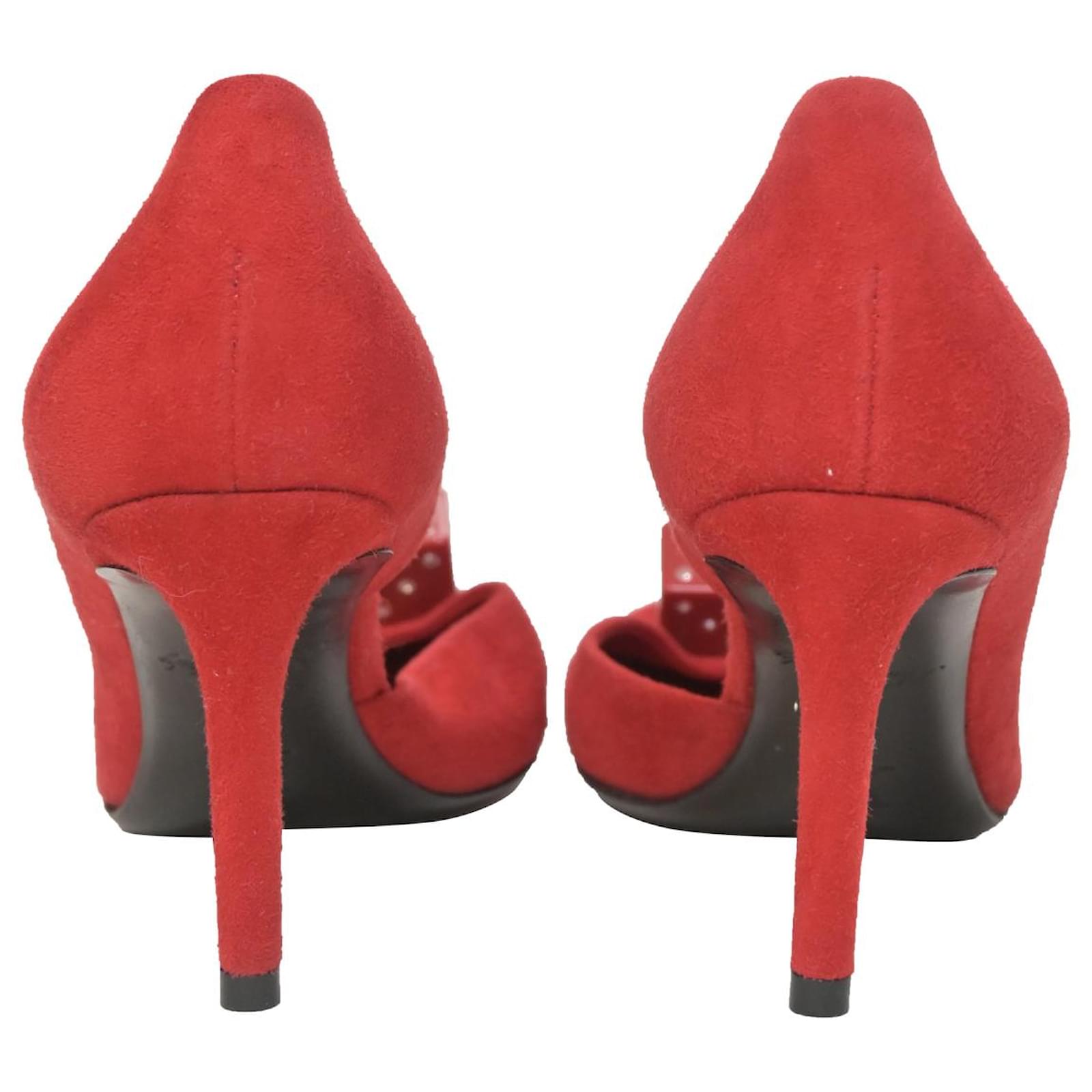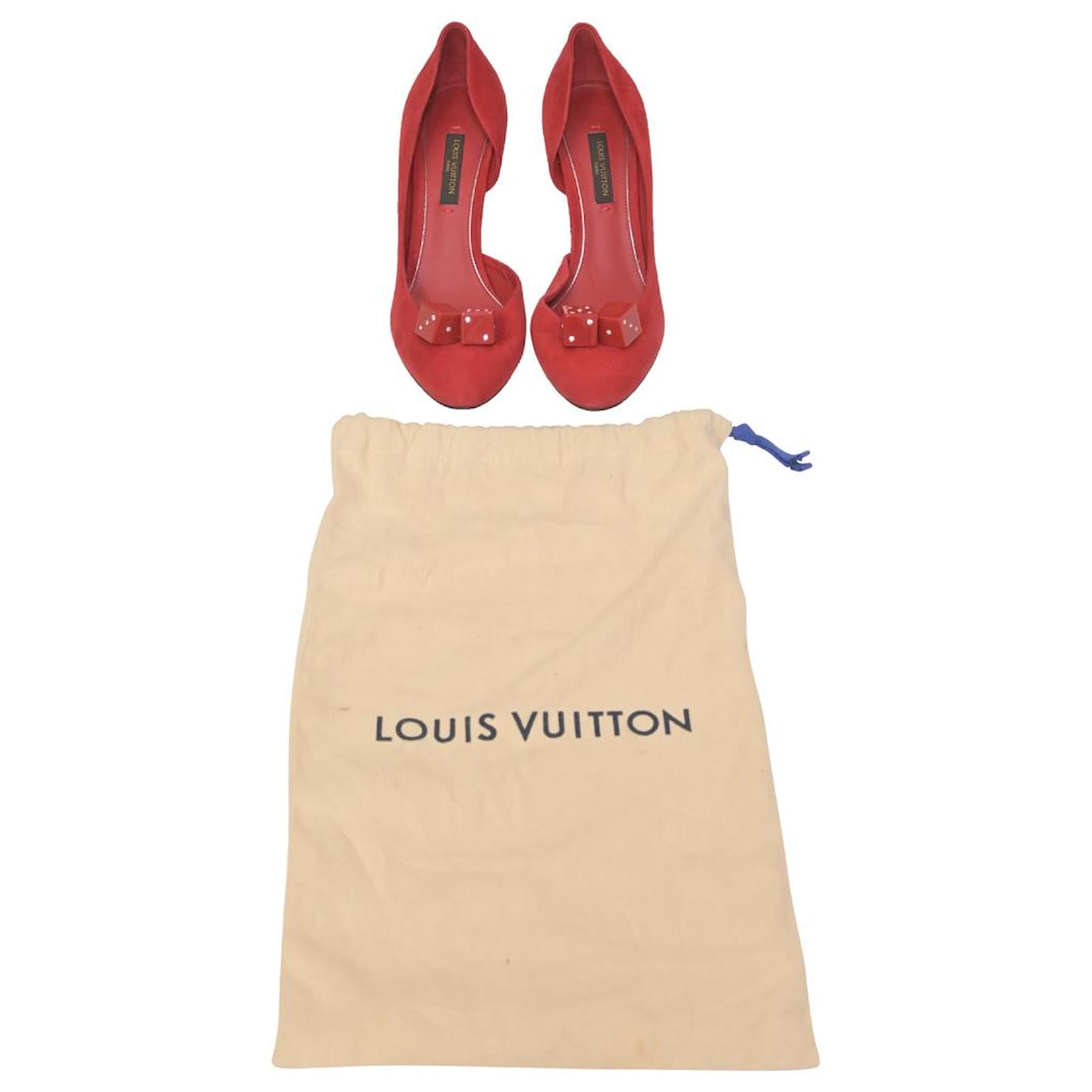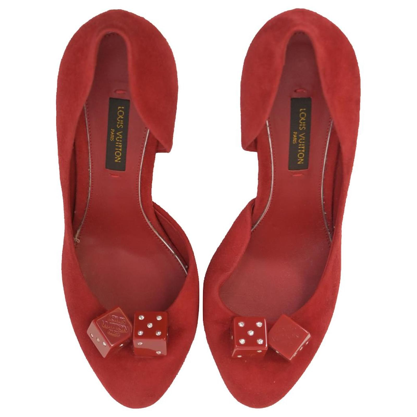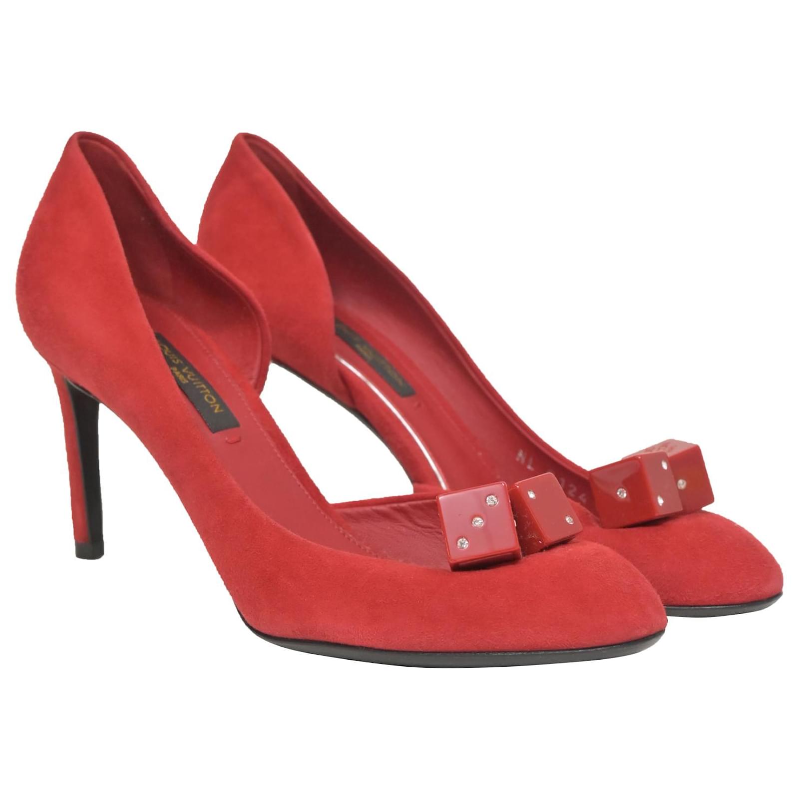 Make a stylish entrance with the Louis Vuitton Dice Pumps in Red Suede. These pumps combine classic elegance with a unique twist. Crafted from luxurious red suede, they offer a sophisticated and refined look. The highlight of these pumps is the distinctive dice detail at the vamps, showcasing Louis Vuitton’s attention to detail and playful design.\n*with dust bag\n\nLouis Vuitton Dice Pumps in Red Suede\nMaterial: Suede\nColor: Red \nSize: FR34\nCondition: Very good\nSign of wear: Light wear\nSKU: 366174 \n \n Product Id: 366174 \n
