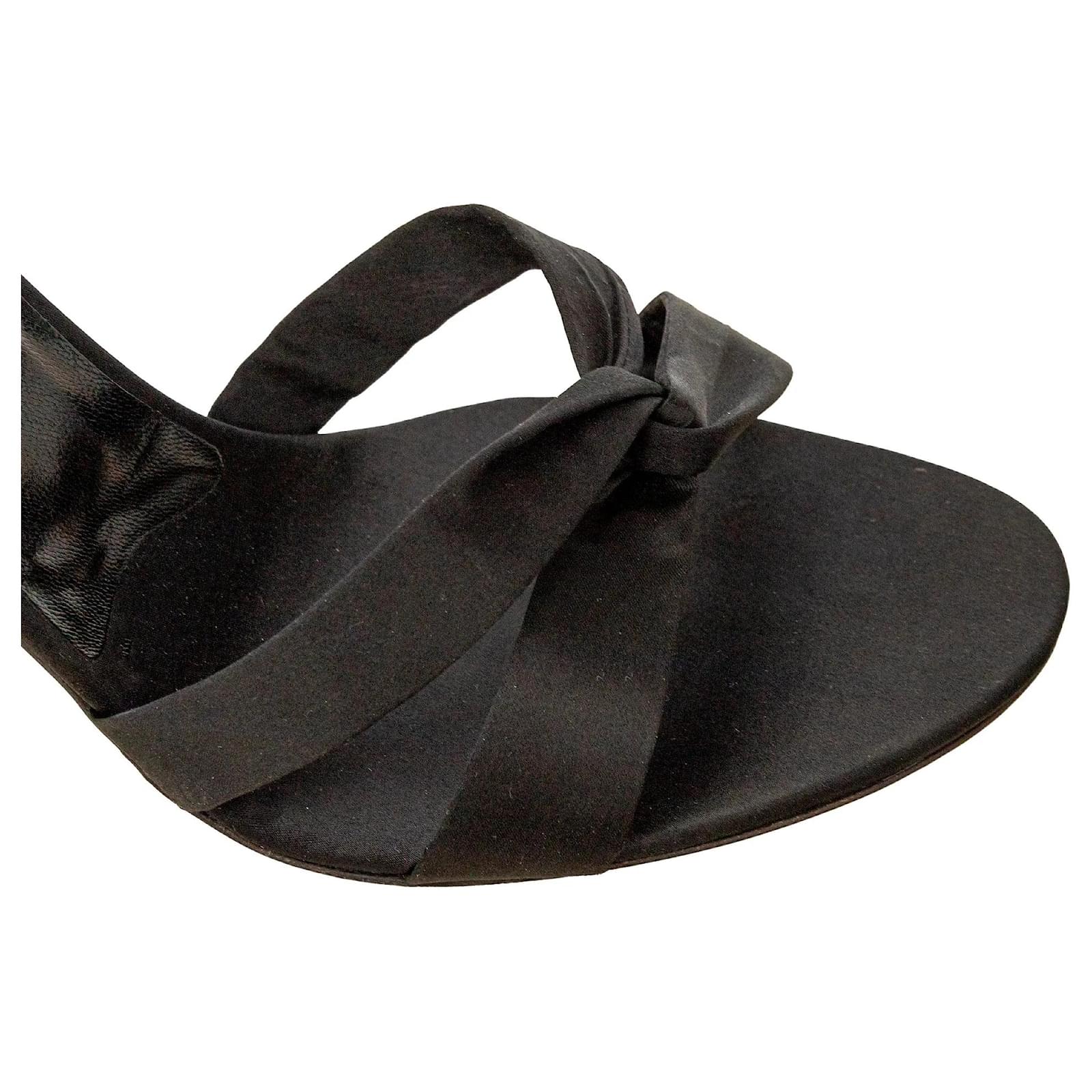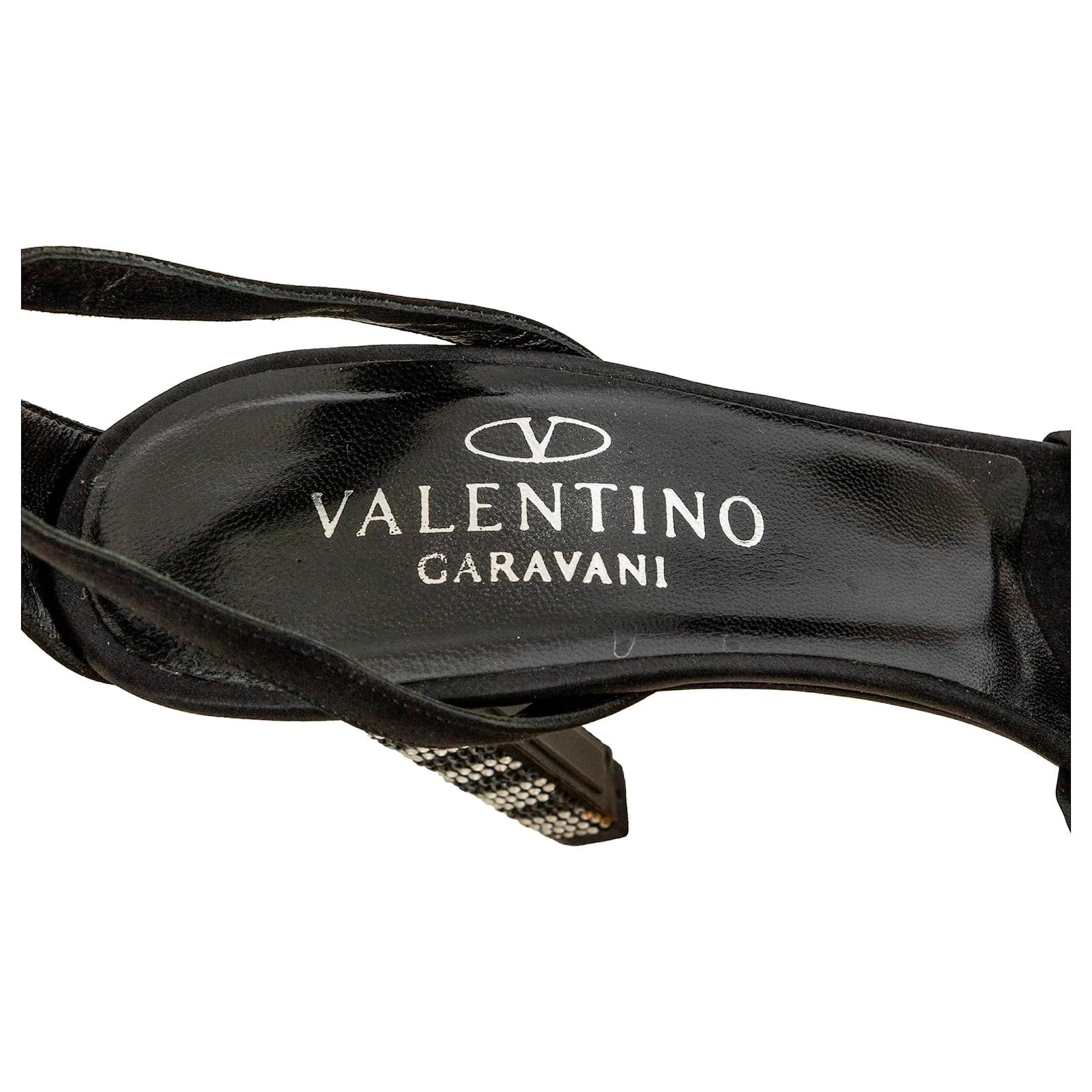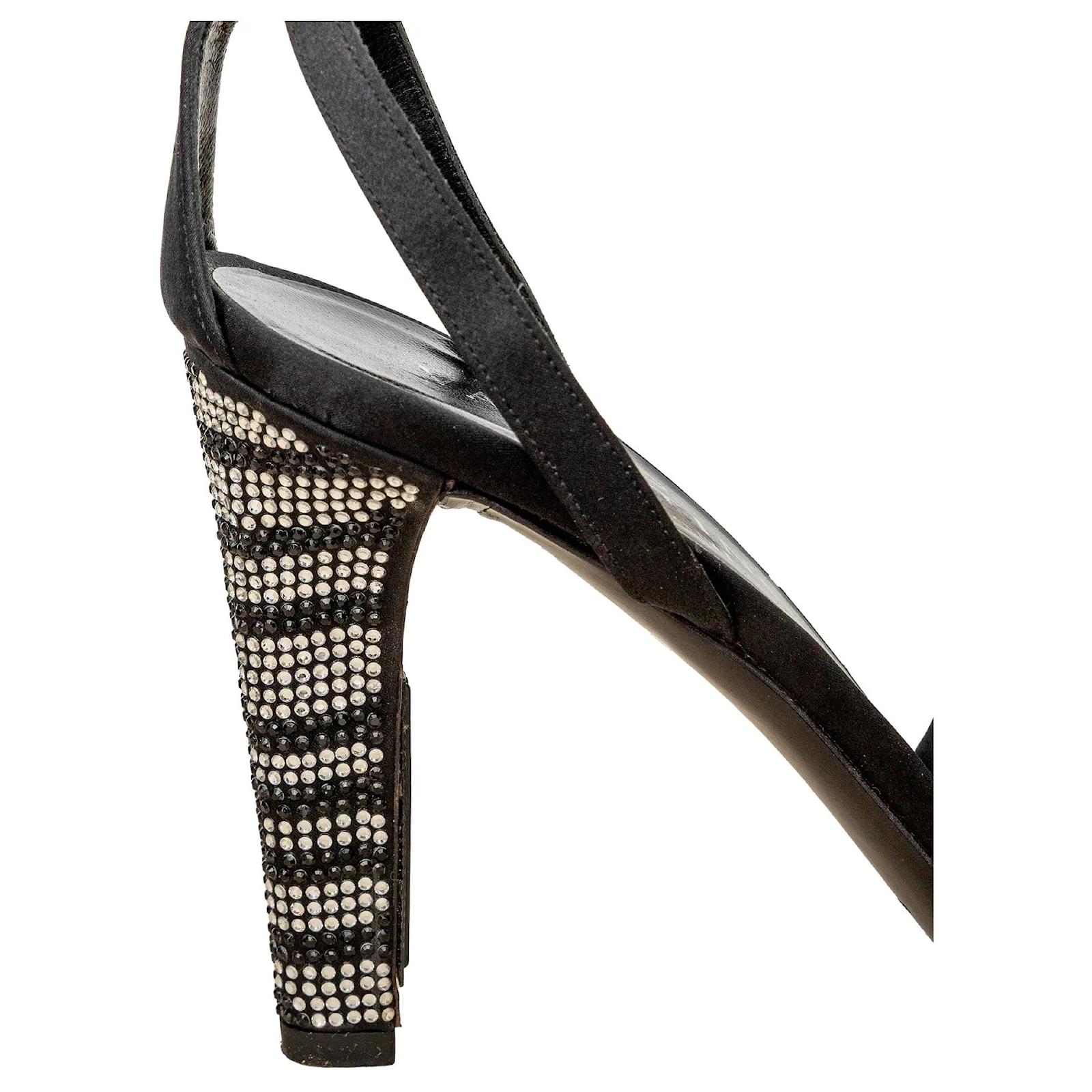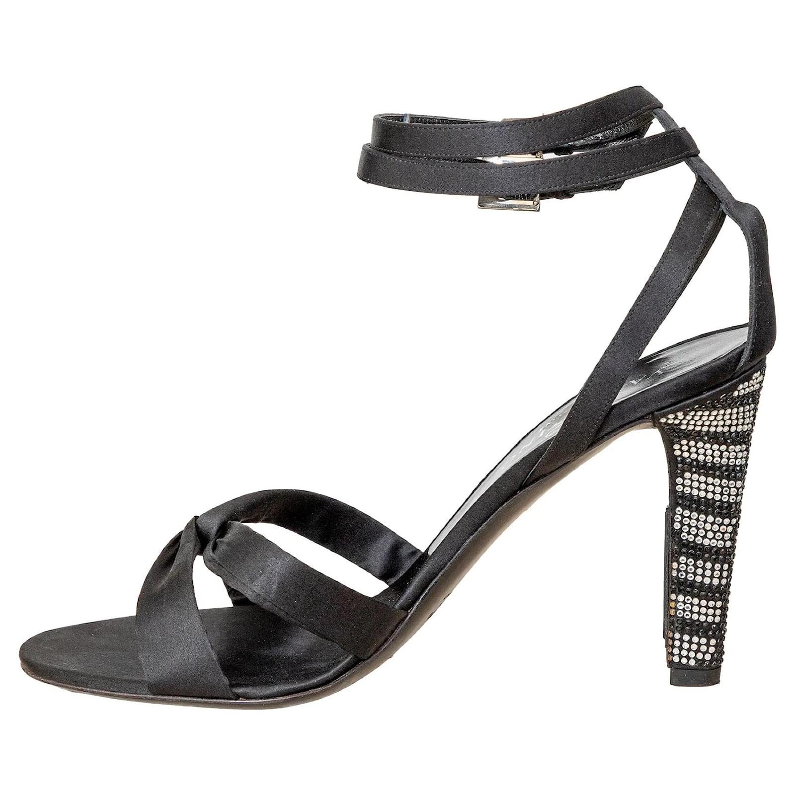 Valentino heels in black satin with double strapped ankle, twisted fabric upper, and crystal-embellished heels for a sparkling finish.\n\nInclusion: box. \n\nInsole Length:26\nHeel:10\nFabric | Leather