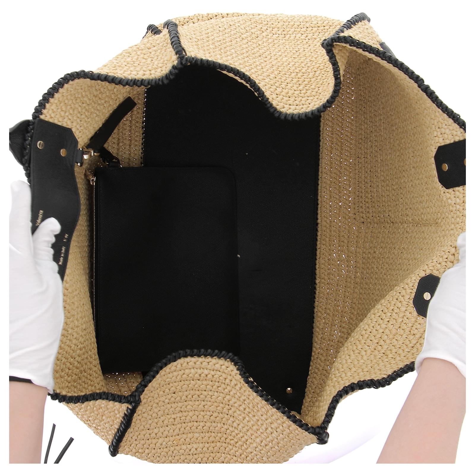 Large raffia tote bag – VALEXTRA\nDimensions: \nWidth: 50 cm – Height: 40 cm\nCondition: Never worn\nPackaging: Dust bag\nShop Price: €3,880