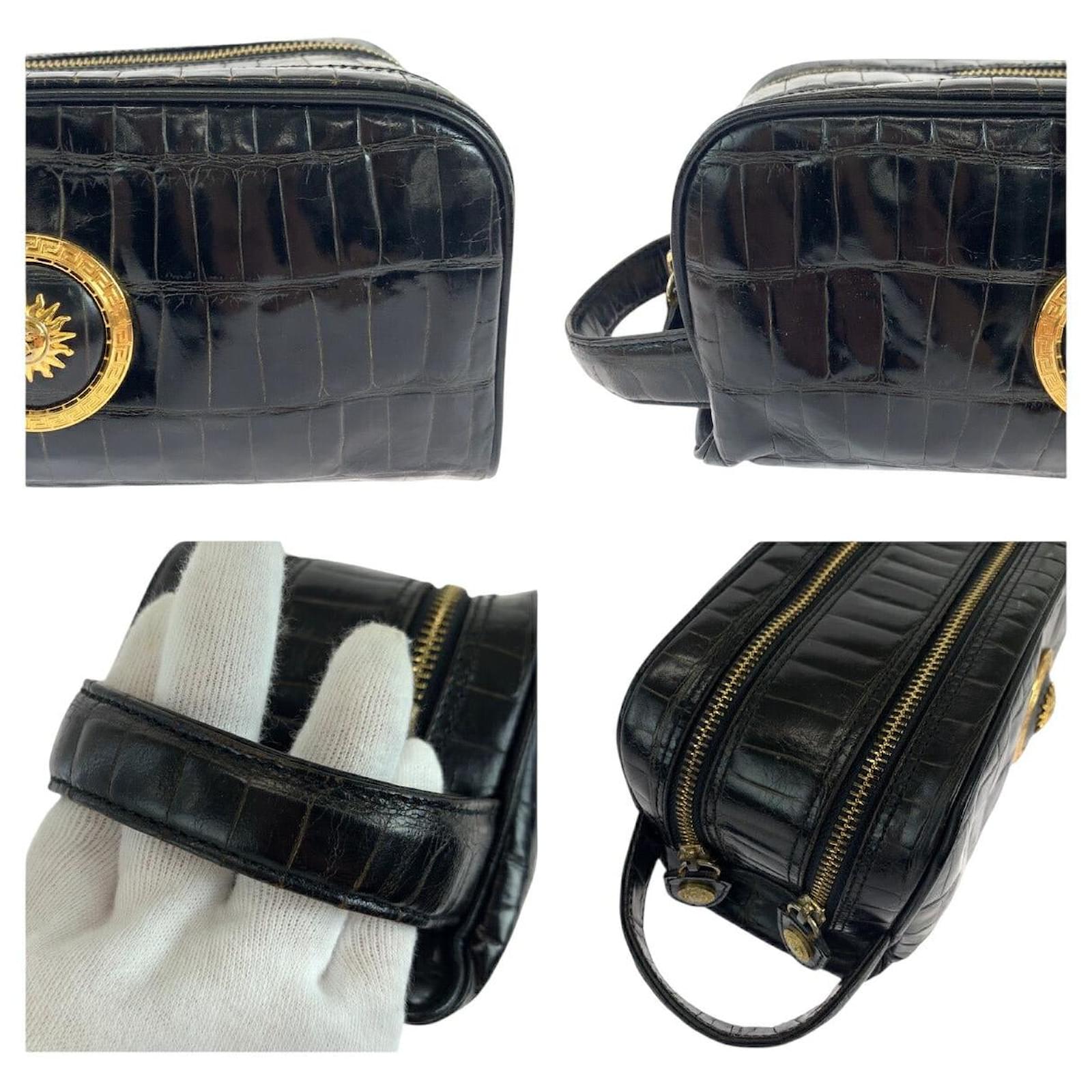 – General information -\nBrand : VersaceItem name : Versace Sunburst Embossed Leather Clutch BagModel number : – Design -Type : Clutch BagMaterial : LeatherColor : BlackGender : Male- Size -Size : Length : 24.5Depth : 10Height : 11Handle Drop : 17Item Material : LeatherItem Series : SunburstItem Color : BlackClosure Type : ZipperInterior : Open pocket x 1Exterior : Zipper pocket x 1- Inventory -Serial Number : SKU : 120210012096000A0025817724- Included Items -Accessories : null*Before purchasing, please refer to the images of the accessories included with the item.- Condition -Condition : Good ConditionRank : Used A Used condition with obviously scratches and stains.Condition Notice : Before purchasing, please refer to the images for the exact condition of the item. Measurments: width: 100 mm length: 245 mm height: 110 mm handle drop: 170 mm \n Product Id: 511745 \n