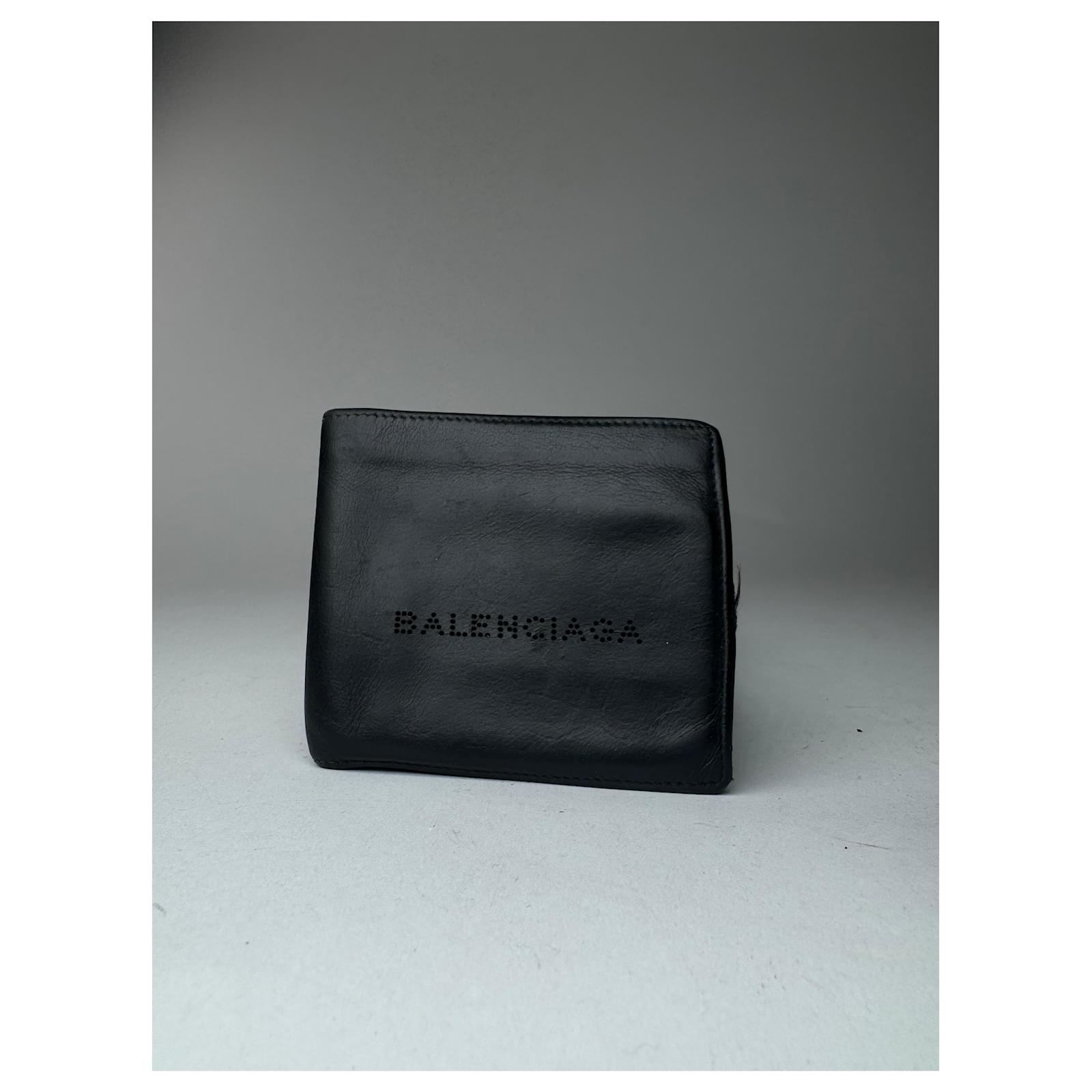 BALENCIAGA Vintage Black Leather Foldable Wallet.\nThis vintage wallet by Balenciaga is crafted from smooth black leather and\nfeatures the brand’s subtle embossed logo on the front. A timeless unisex\naccessory, it folds open to a matching black leather interior. Made in Italy,\nthis piece combines functionality with understated design.\nBrand: BALENCIAGA\nModel: Foldable Leather Wallet\nCondition: Very Good\nCondition Details: Light scratches and minor pulls; overall very well preserved.\nMain Color: Black\nInterior Color: Black\nMaterial: Leather\nMade in: Italy\nWidth: 11 cm\nHeight: 9 cm\nStyle: Unisex