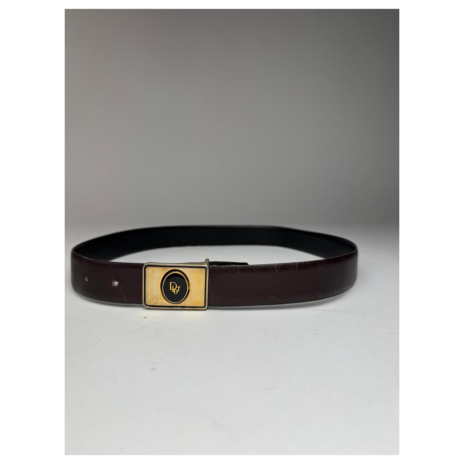DIOR Black Leather Belt with Gold Logo Buckle.\nThis vintage belt is crafted in black leather and features a gold-tone steel\nbuckle with the classic Dior logo engraved on the front. Timeless and versatile,\nit reflects the house’s refined approach to accessories with subtle statement\ndetails.\nBrand: DIOR\nModel: Belt\nCondition: Very Good\nCondition Details: The leather shows light signs of wear and slight material\nbrittleness, but remains in very good overall condition. The gold-tone buckle is\nclean with minor surface marks.\nMain Color: Black\nHardware Color: Gold\nMaterial: Leather, Steel\nComes With: -\nLength: 80 cm\nWidth: 2.8 cm