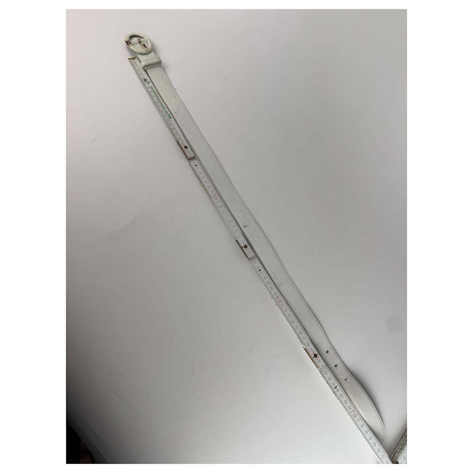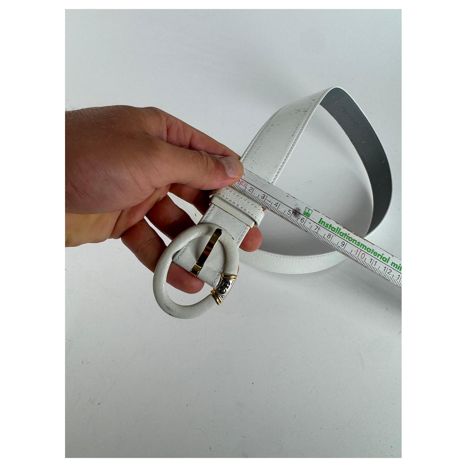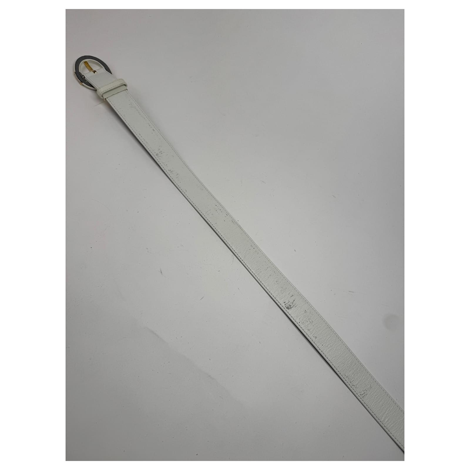 DIOR Vintage White Leather Belt with Gold-Tone Buckle.\nThis vintage belt is finely crafted of white leather with a gold-tone steel and\nleather-covered buckle. The interior is lined in gray leather. A refined piece\nlikely dating from the 1980s, it reflects Dior’s elegant take on everyday\naccessories.\nBrand: DIOR\nModel: Vintage Leather Belt\nCondition: Good\nCondition Details: Visible flaking on the interior and light stains on the white\nleather; otherwise in good vintage condition.\nMain Color: White\nInterior Colour: Grey\nHardware Color: Gold\nMaterial: Leather, Steel\nWidth: 3 cm\nLength: approx. 75 cm\nStyle: Unisex\nEra: 1980s (estimated)