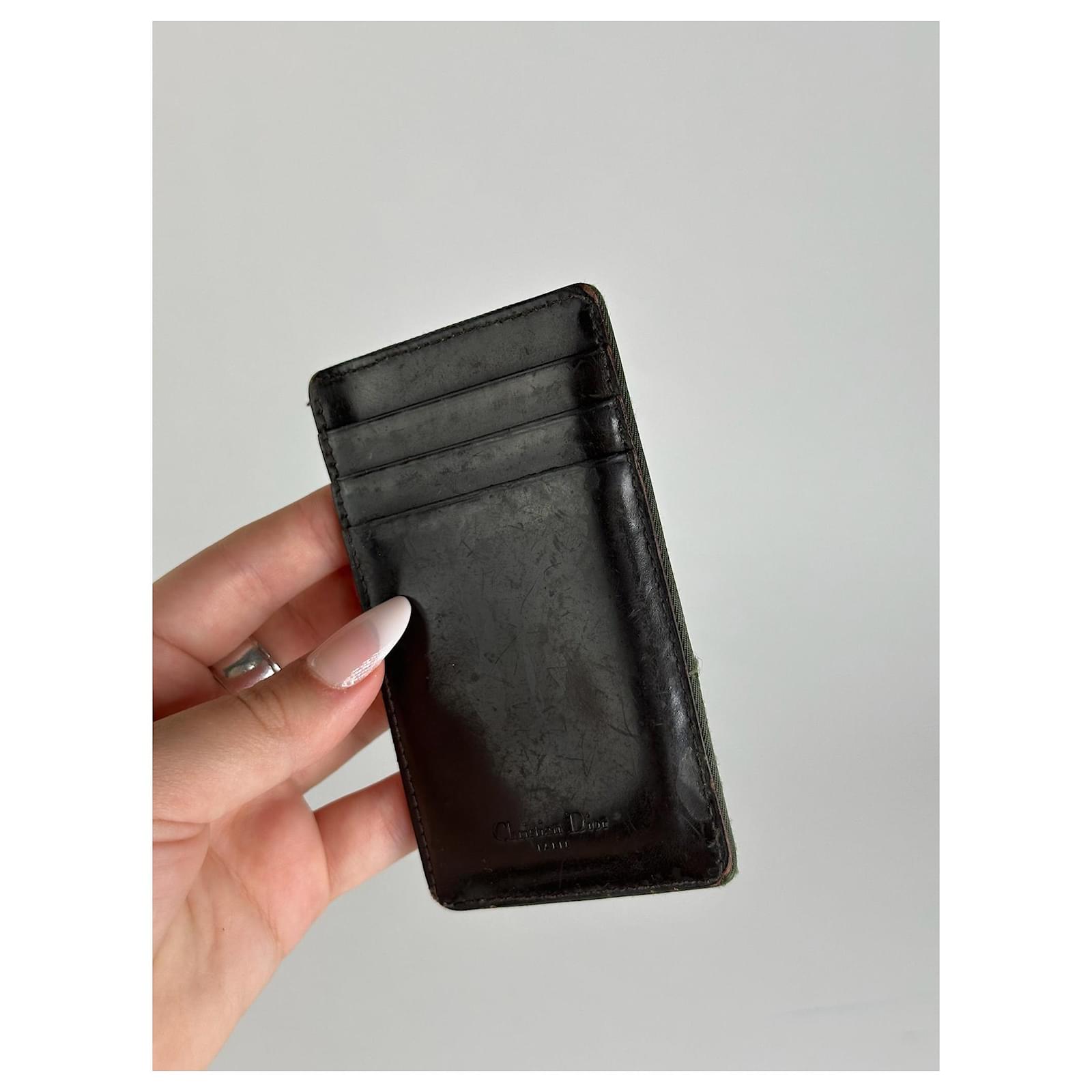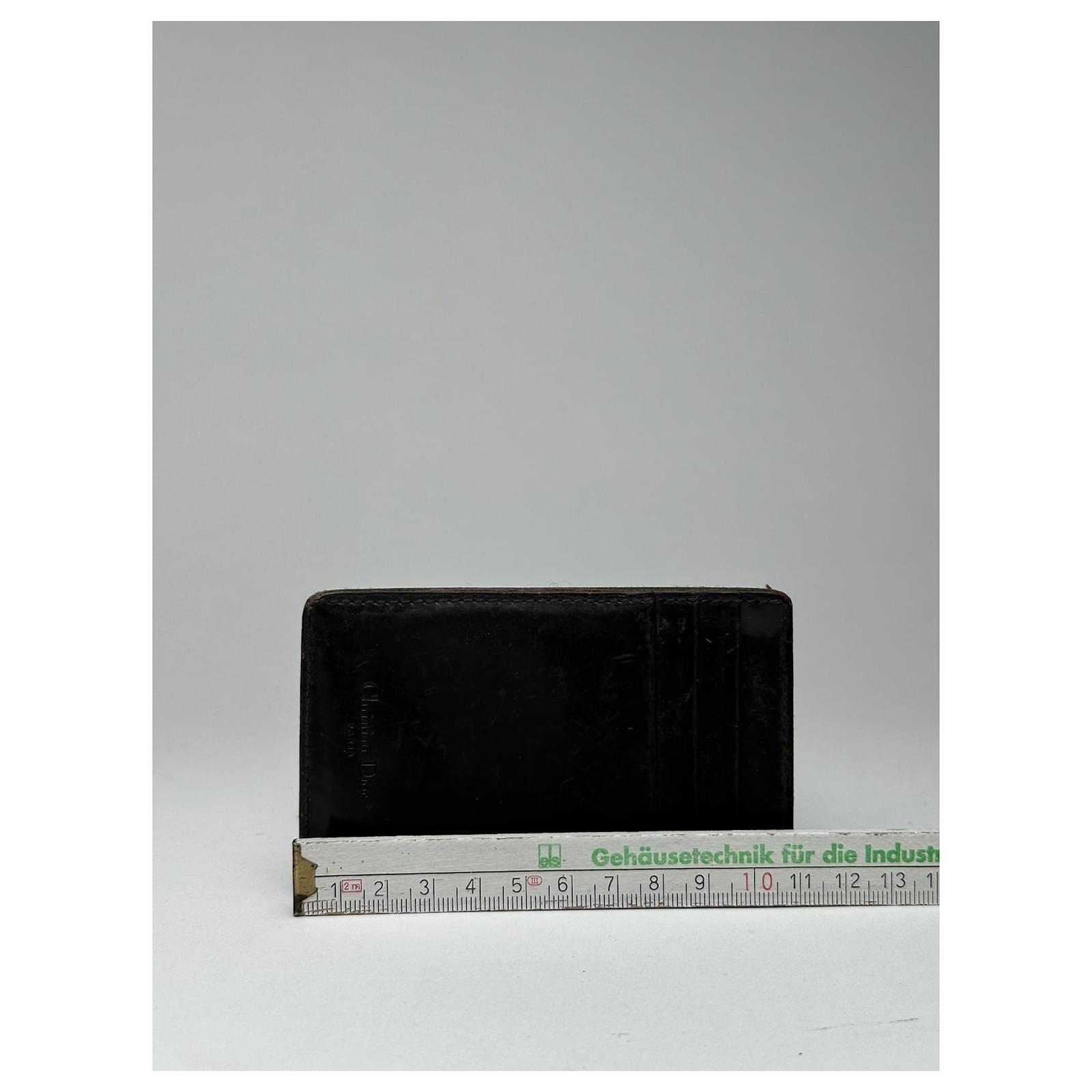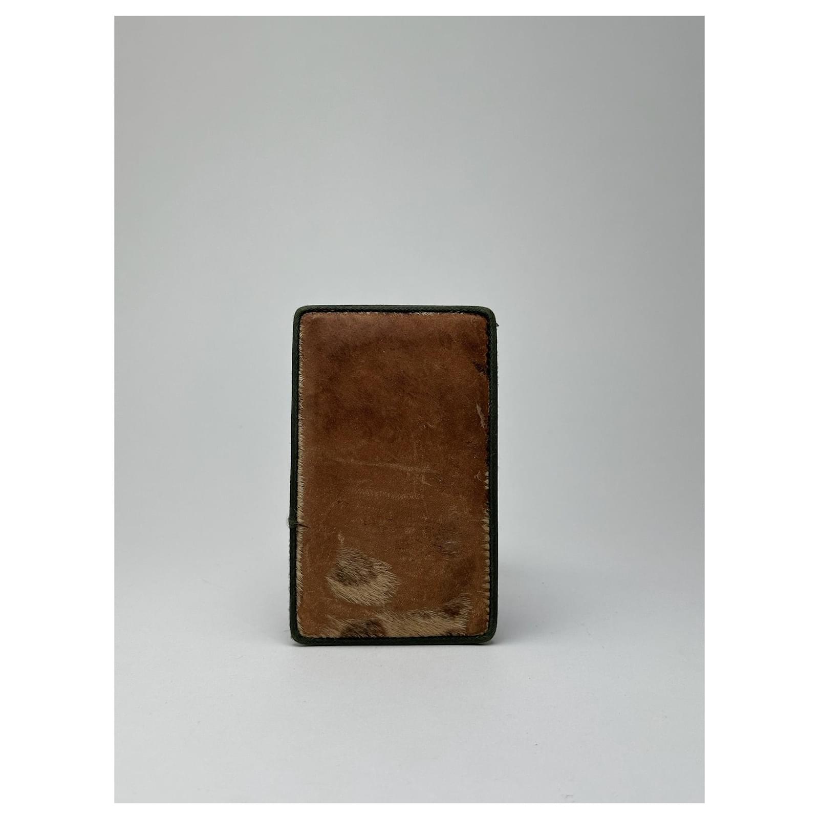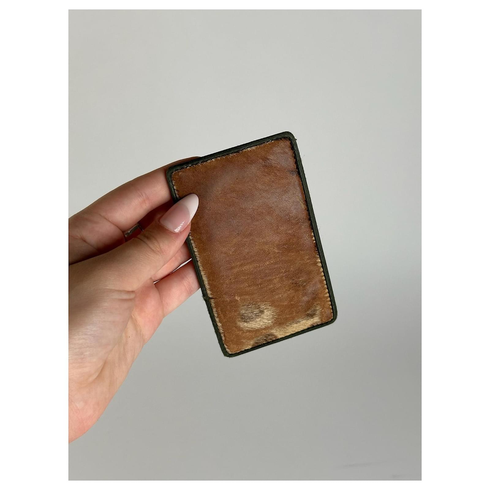DIOR Vintage Leather & Haircalf Cardholder. This unique cardholder is finely\ncrafted with one side in brown calf hair and the other in smooth brown leather.\nThe front features an embossed Christian Dior logo.\nBrand: DIOR\nCondition: Good\nCondition Details: The leather is in good condition with minor signs of wear.\nThe haircalf side shows some damage and thinning. The interior is clean and\nwell-kept.\nMain Colour: Brown\nMaterial: Leather, Haircalf\nMade In: italy\nWidth: 11 cm\nHeight: 7 cm