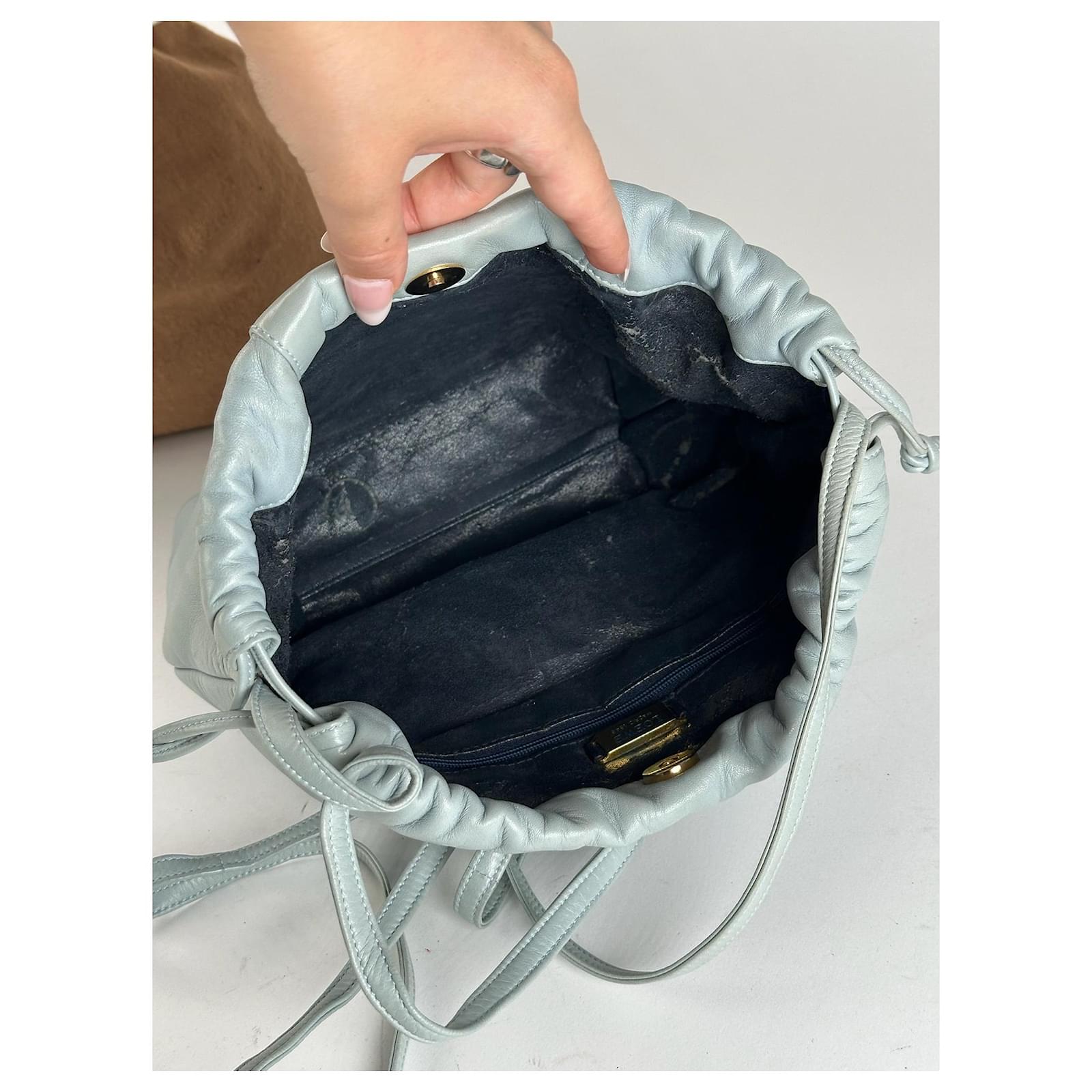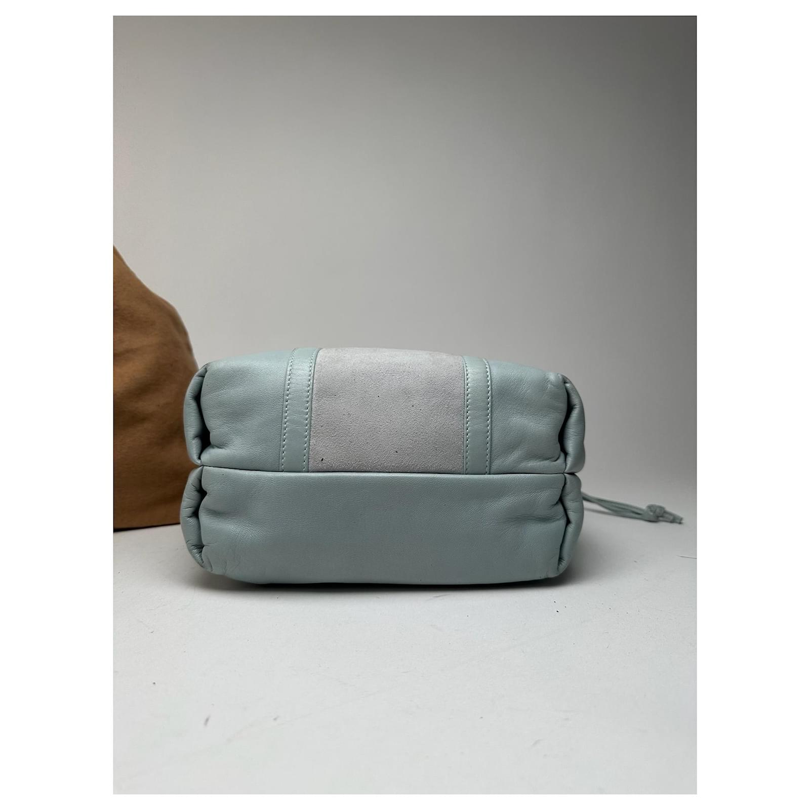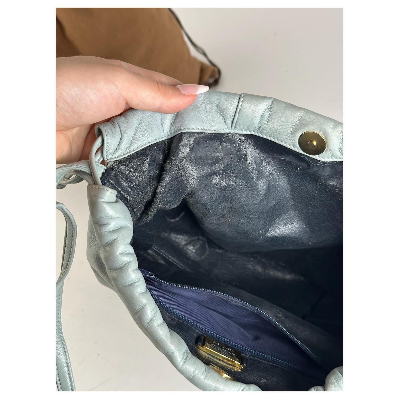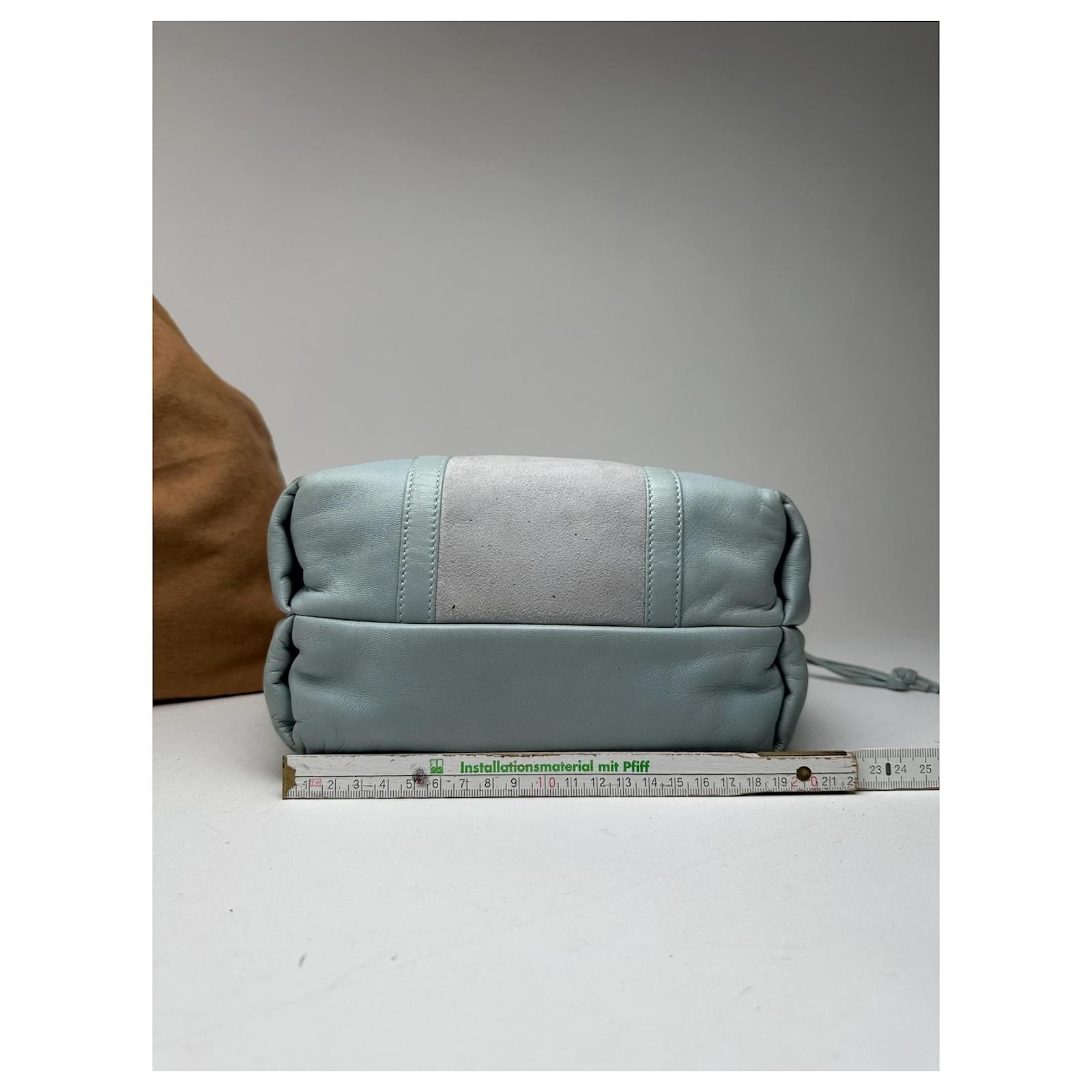 LOEWE Vintage Flamenco Light Blue Leather 2-Way Handbag. This versatile unisex\n2-way handbag is crafted from light blue smooth leather and matching suede. It\nfeatures a magnetic closure and is lined in black leather. The Flamenco model\nwas first introduced in the 1980s and is known for its soft silhouette and\nartisanal drawstring-inspired design, reflecting LOEWE’s heritage in Spanish leather craftsmanship.\nleather craftsmanship.\nBrand: LOEWE\nModel: Flamenco\nCondition: Very Good\nCondition Details: The exterior is in very good condition with minimal signs of\nwear. The interior leather lining is heavily damaged and shows significant\npeeling.\nMain Color: Light Blue\nInterior Color: Black\nHardware Color: golden\nMaterial: Leather, Suede\nComes With: Dustbag\nWidth: 21 cm\nHeight: 23 cm