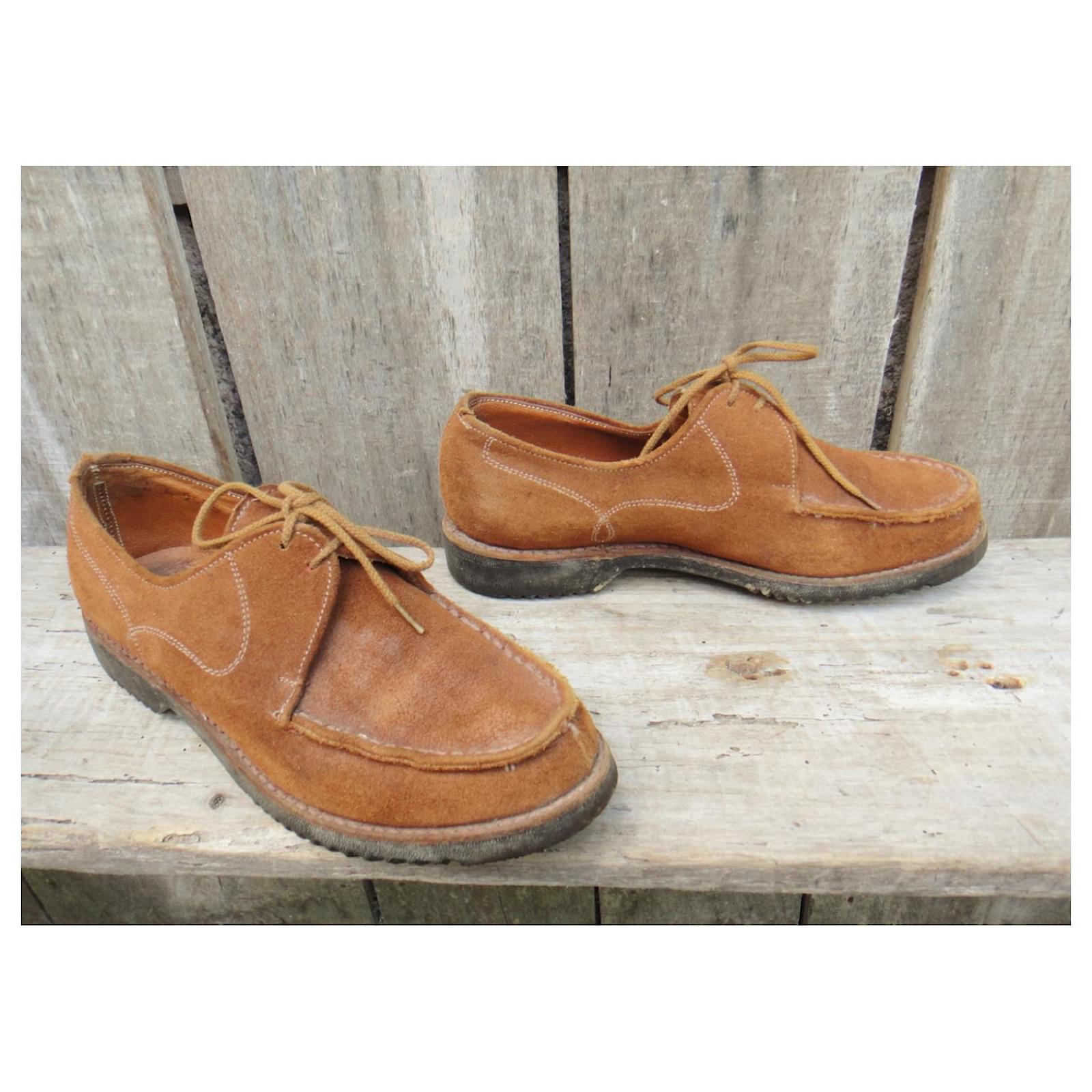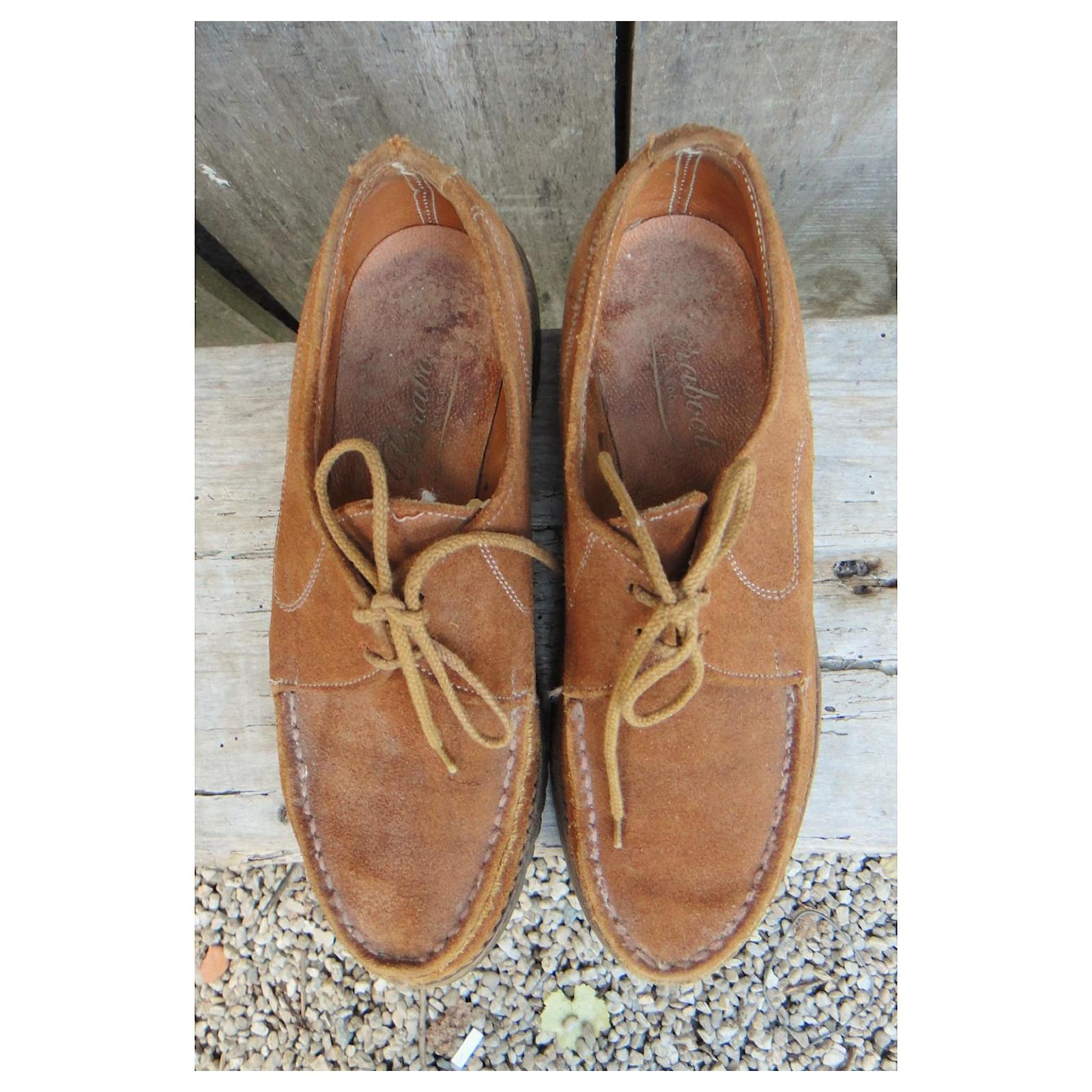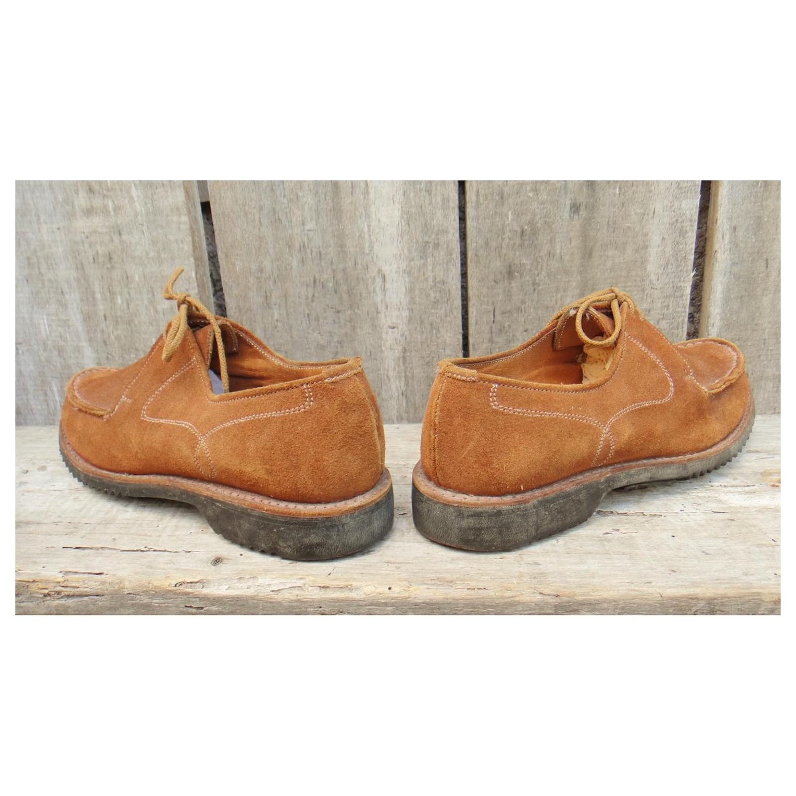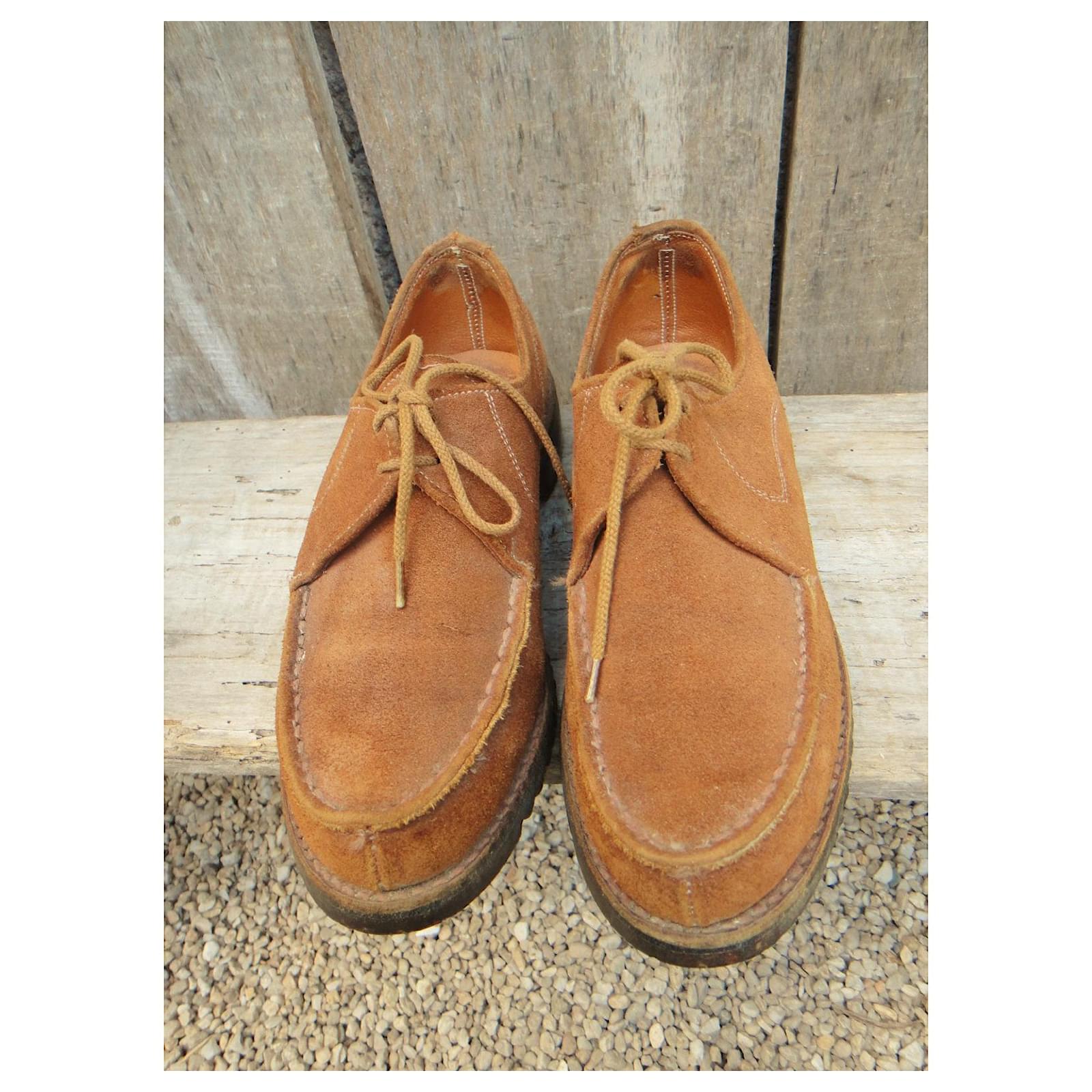 – Paraboot derbies\r\n- vintage circa 1975\r\n- shoe size 4 UK, correspond to 37 fr, inner length 23 cm\r\n- very good condition at all levels, barely worn\r\n- suede leather lined upper, first leather, Goodyear welted construction on a rubber sole\r\n- heels of 2,5 cm\r\n- made in France\r\n- a delicious pair of vintage Paraboots in perfect condition: an untraceable model, with of course the incredible manufacturing quality specific to the brand\r\n2208023