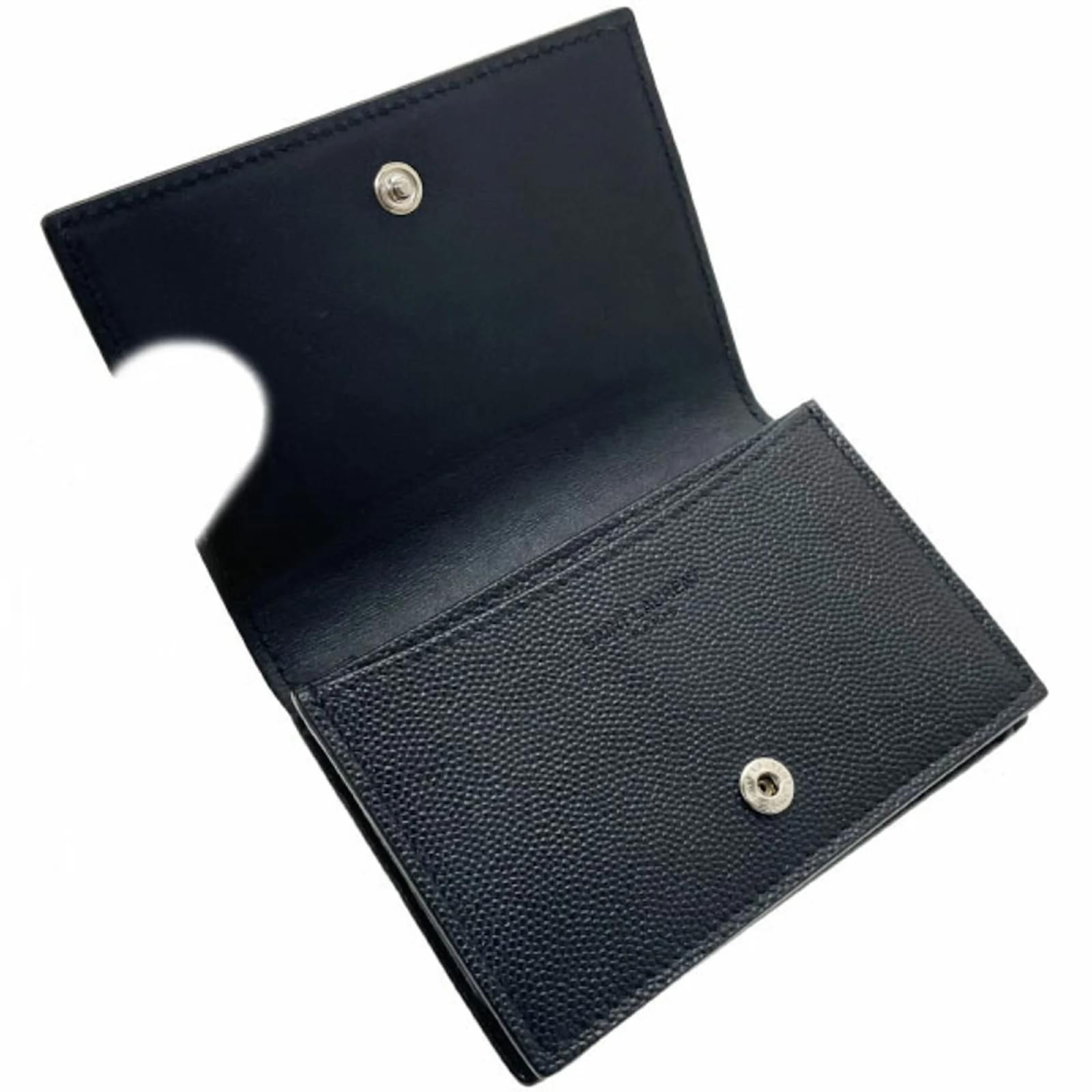 This Yves Saint Laurent card case is crafted from black leather and features a dedicated inner pocket for card storage. Measuring 7.5cm x 11cm x 1.5cm, it is designed to be compact and functional. The item is classified as used but remains in good condition, showing slight traces of usage such as minor scratches and dirt. There are also slight imperfections including dents, peeling, and creases, particularly on the inside. It is advisable to review the provided images for a detailed view of the item’s condition. No additional accessories are included with this card case.